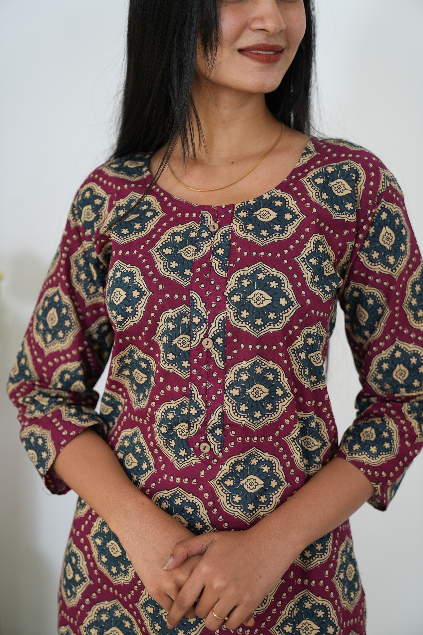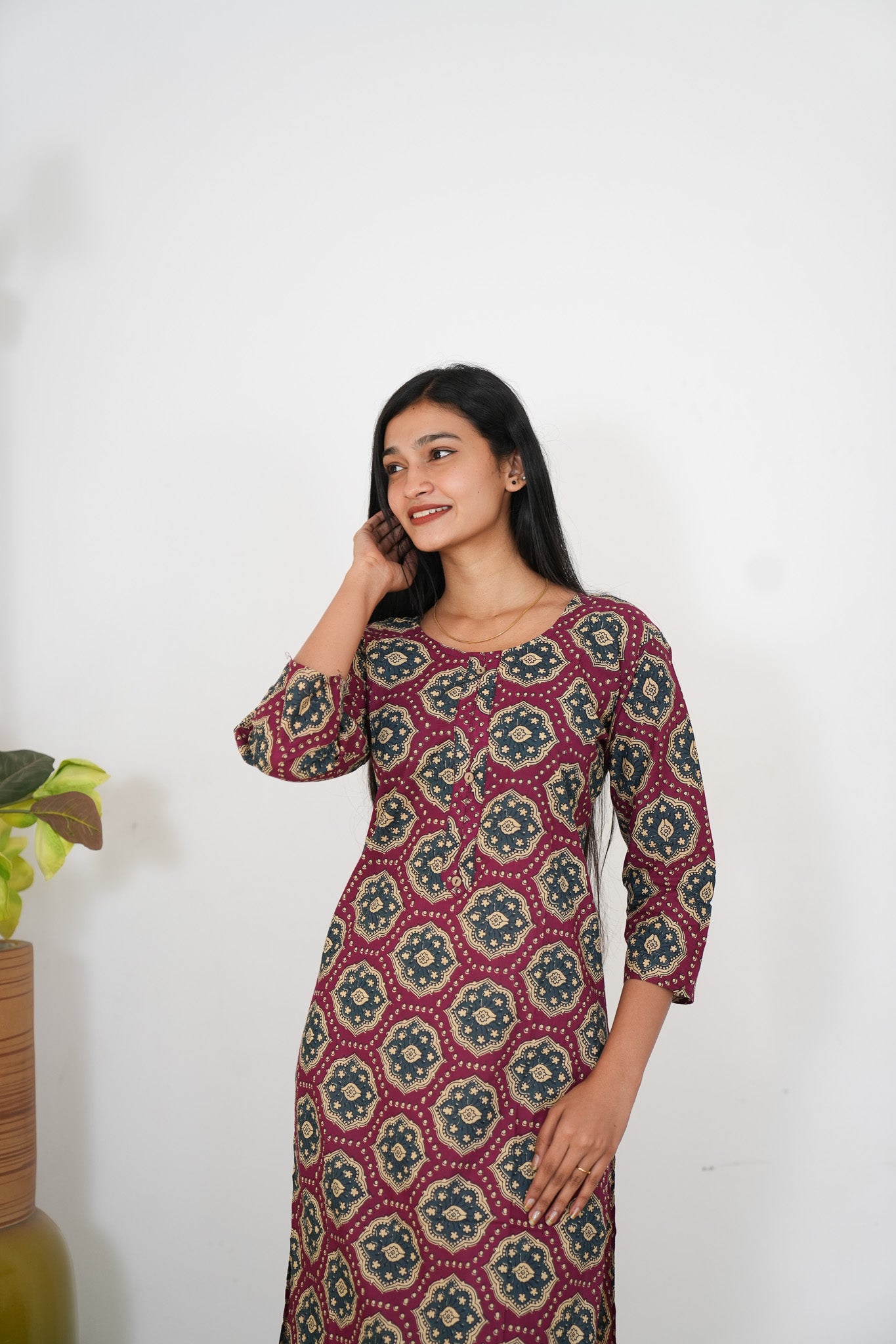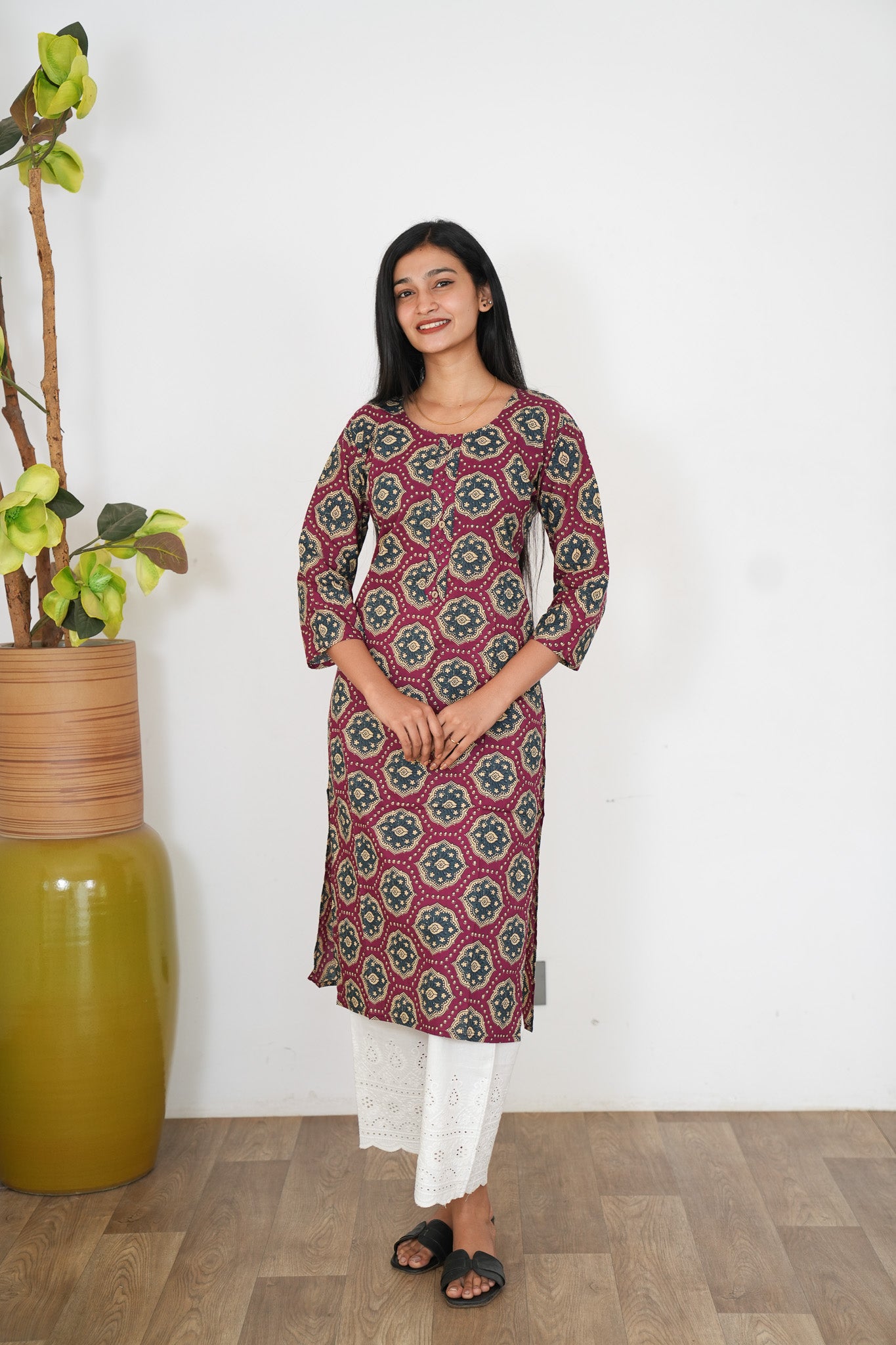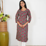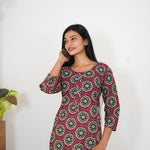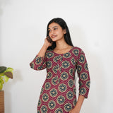 The kurti comes with a floral print all over the kurti with vibrant colour mixtures. It comes with round neck with elbow length sleeves. It can be paired with cotton pants or jeans to pull of that comfortable look!!
