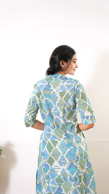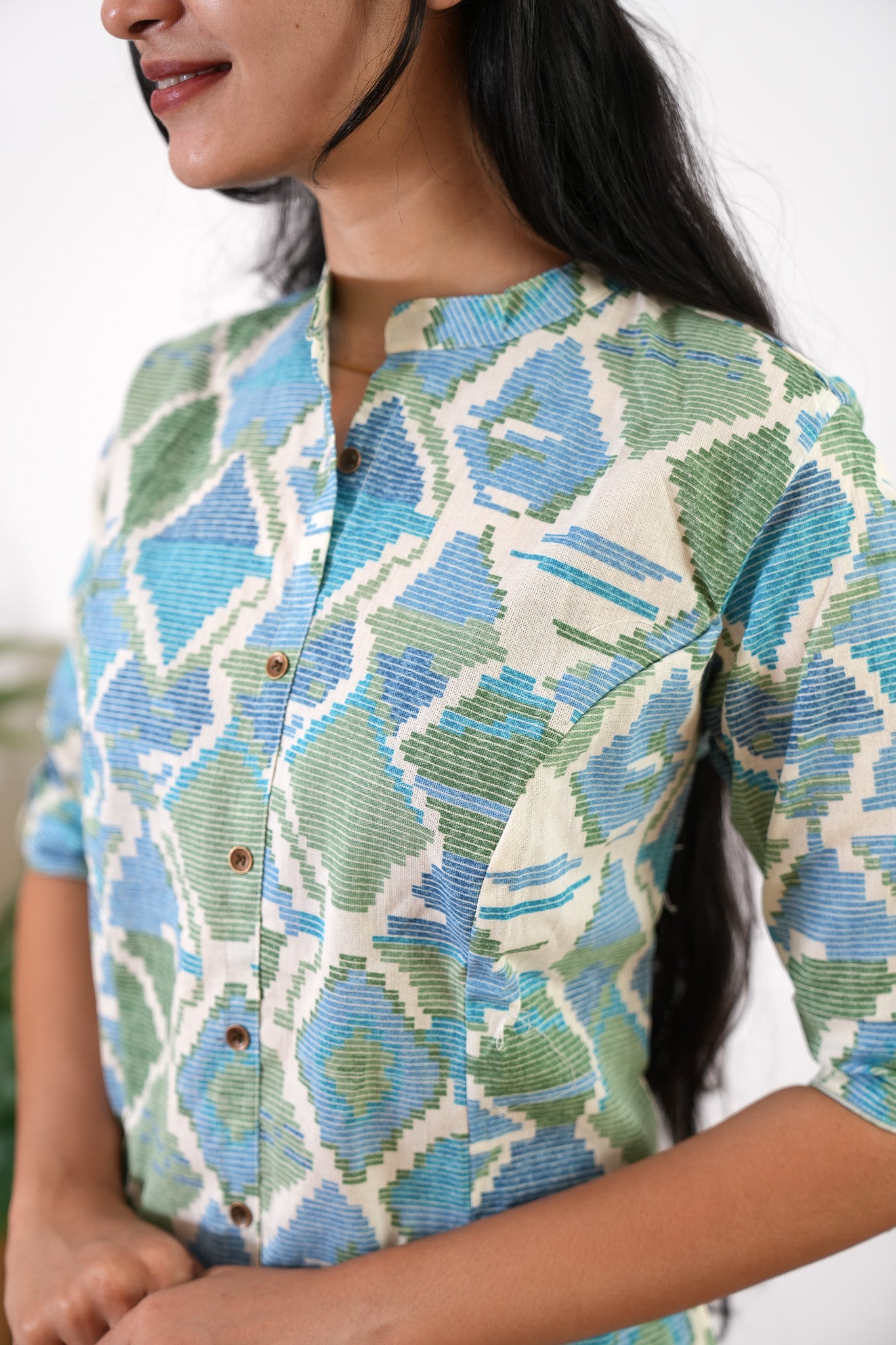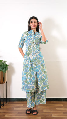 Soft blue cotton co-ords set which can be paired together or with jeans for a easy breezy summer outfit. It comes with matching pants.