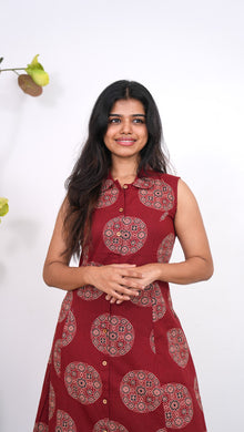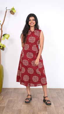 Maroon bloom cotton shirt dress that exudes elegance and sophistication. It has buttons running down.
