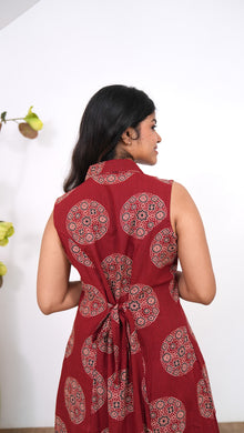 Crimson hibiscus cotton shirt dress(attached sleeves)