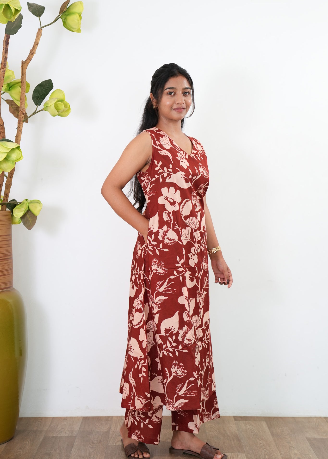 Deep maroon cotton maxi