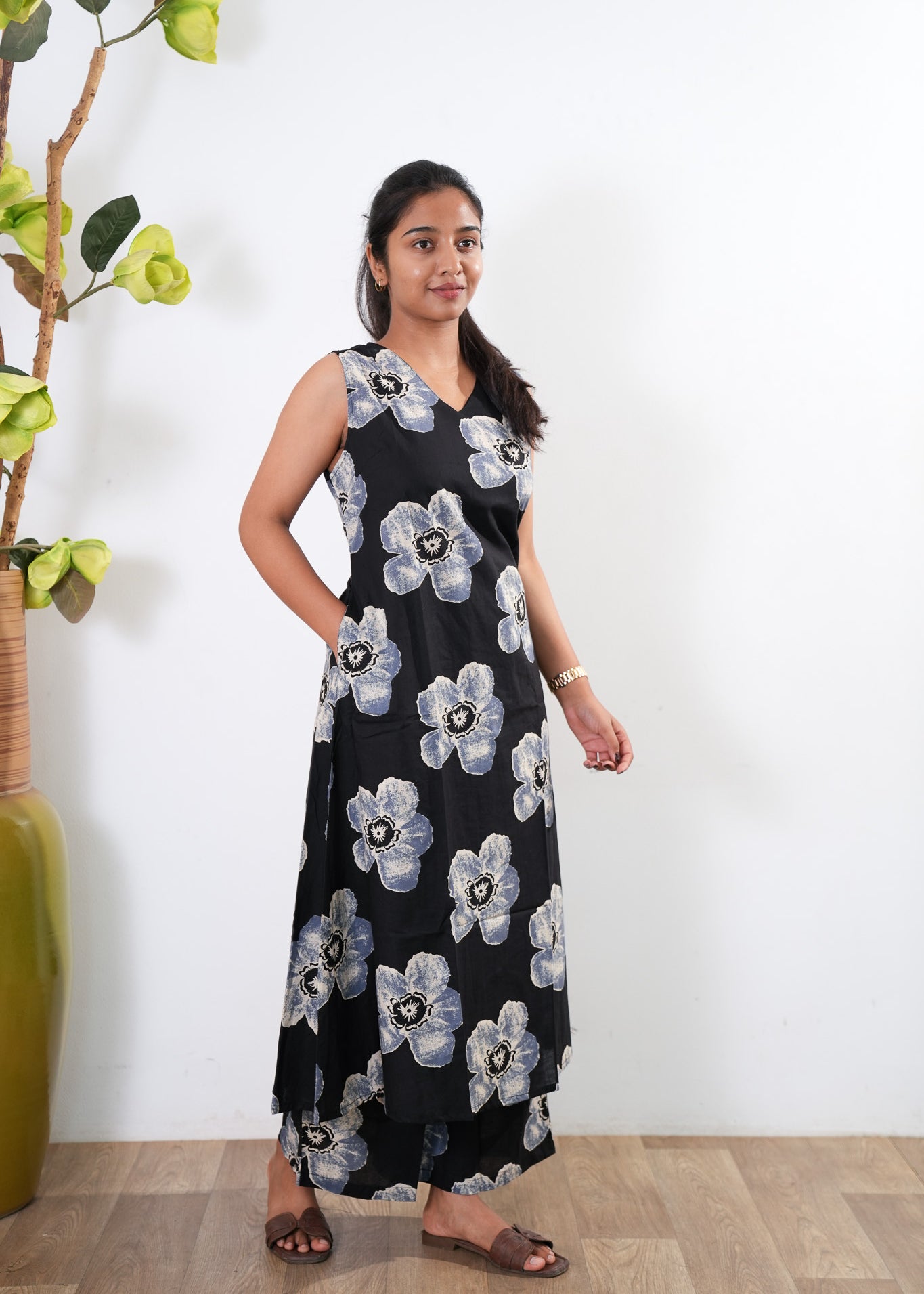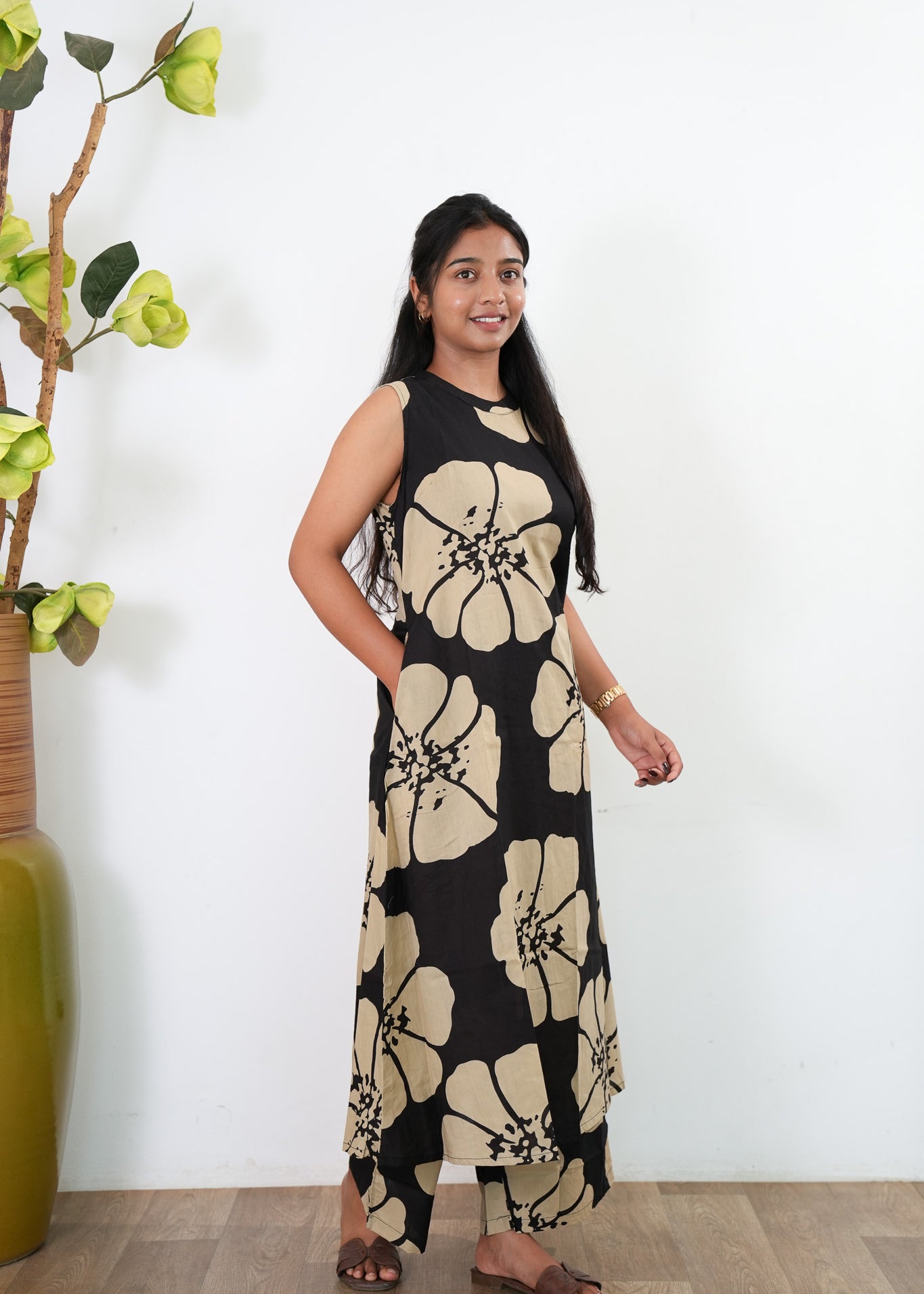 Black lillies cotton midi dress