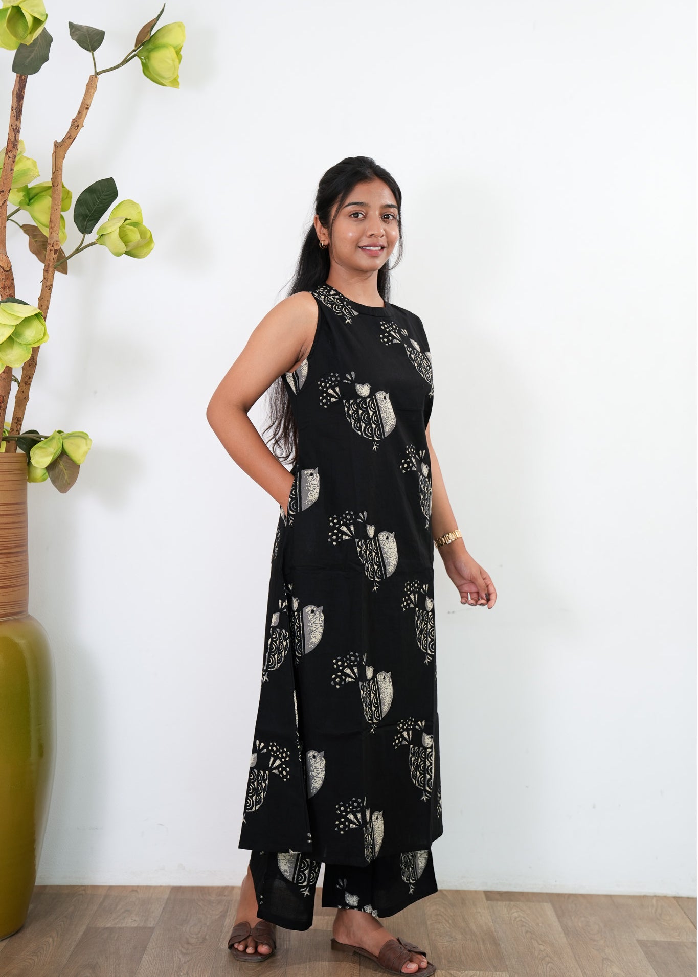 Black katha cotton midi dress