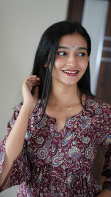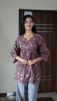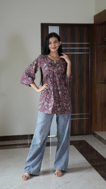 Maroon floral peplum cotton short kurti
