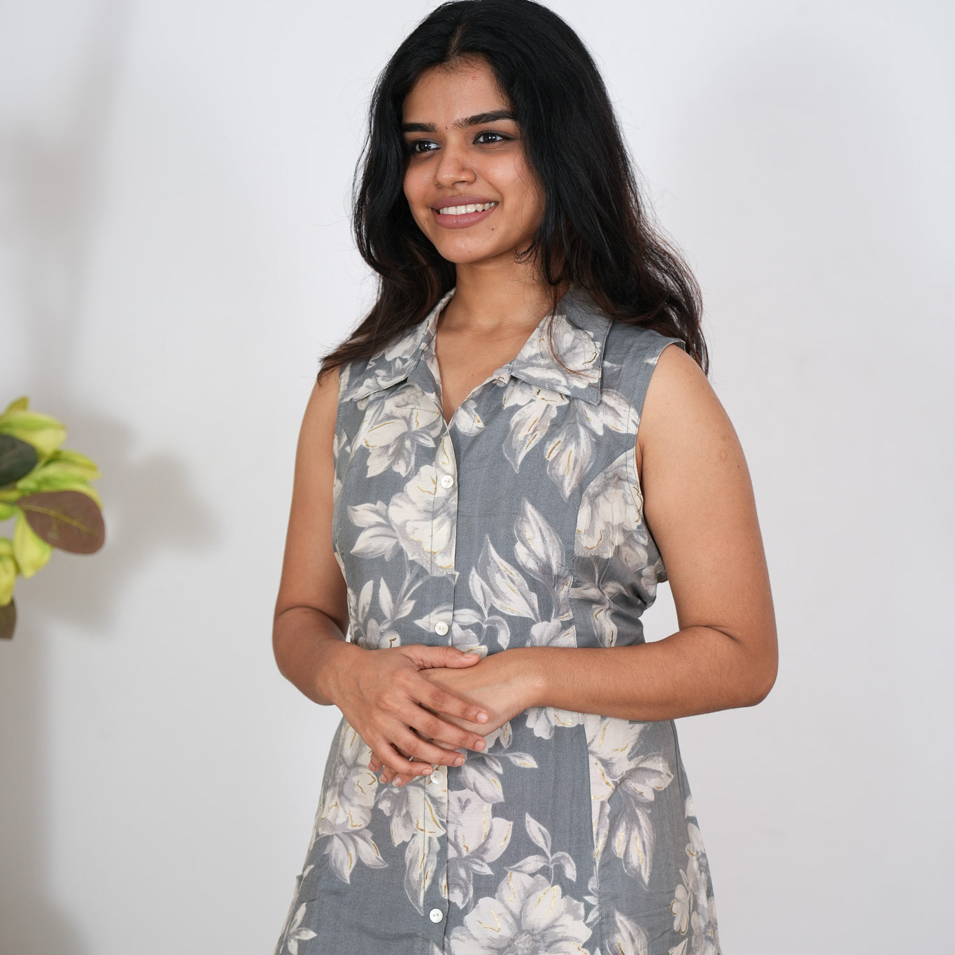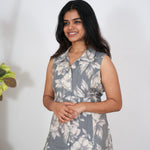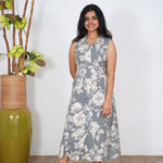 Grey floral cotton shirt dress(attached sleeves)