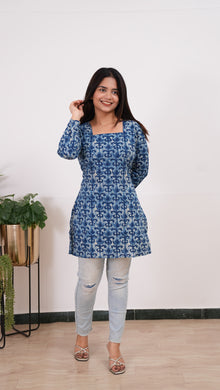 Niraa cotton angrakha kurti - Indigo