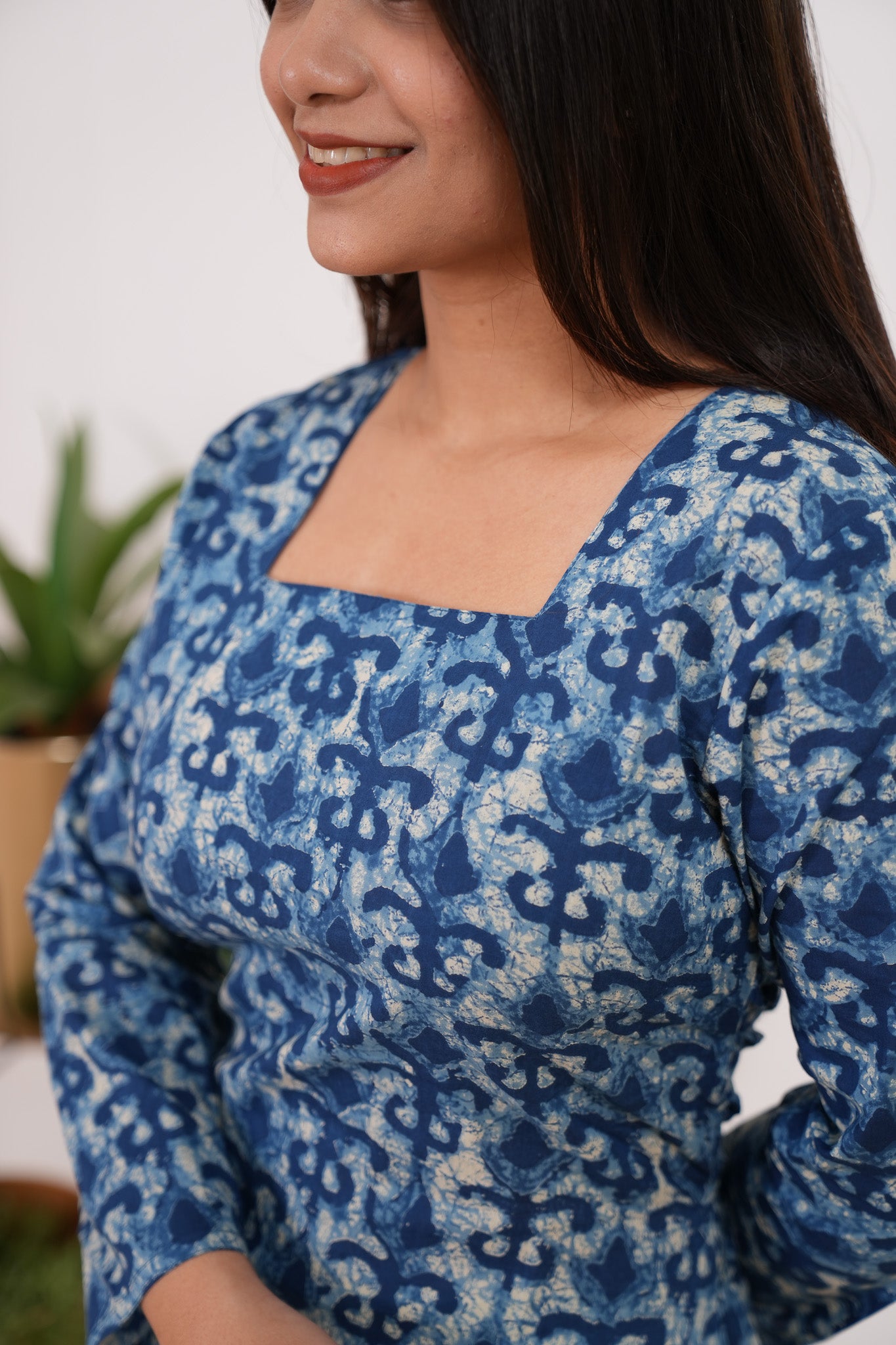 Indigo tie and dye cotton corset kurti