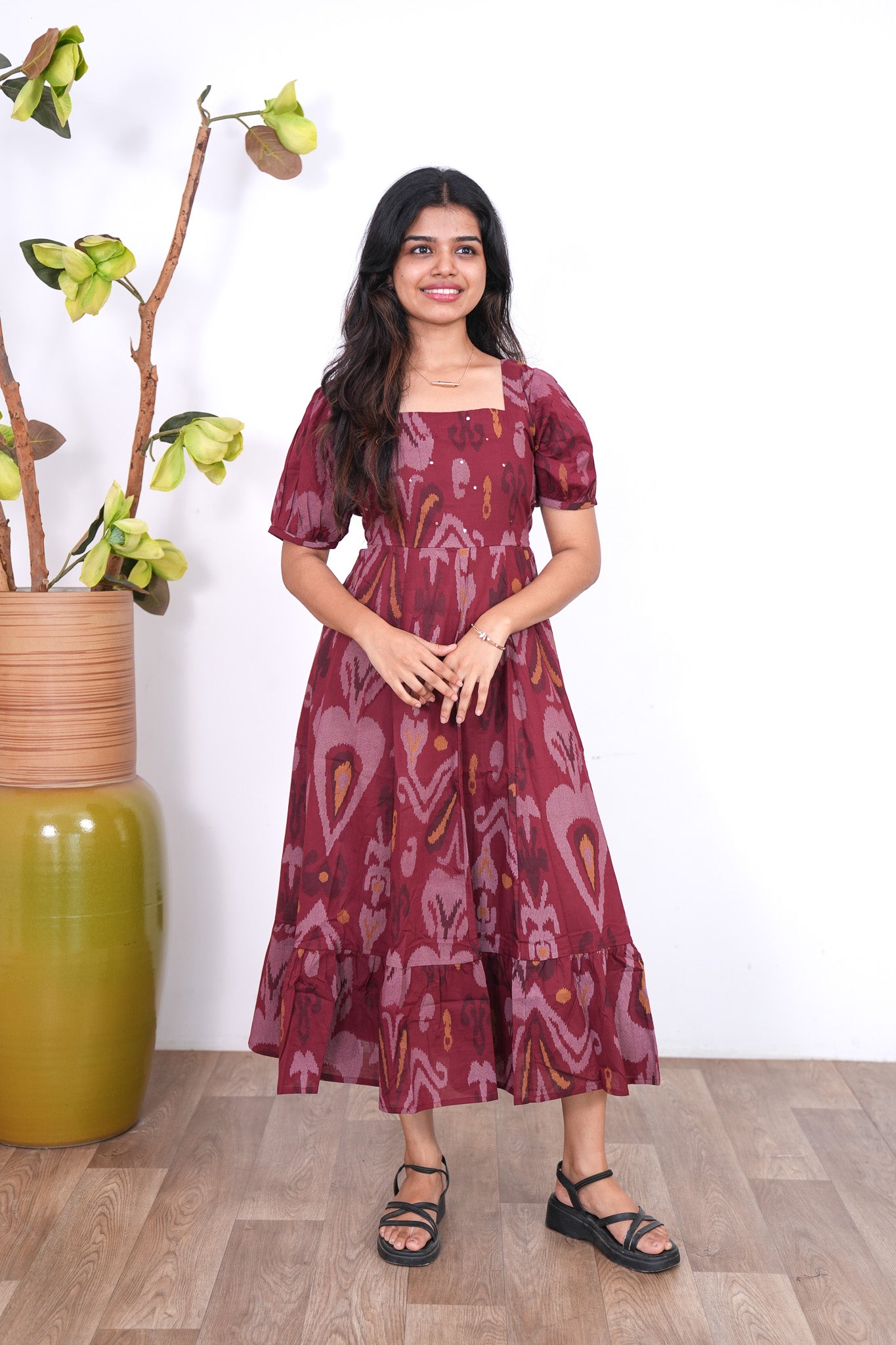 This cotton midi dress has a square neck and balloon sleeves . This dress is so versatile and so comfortable that you would want to wear it for shopping, brunch plans with girls and even dinner dates.