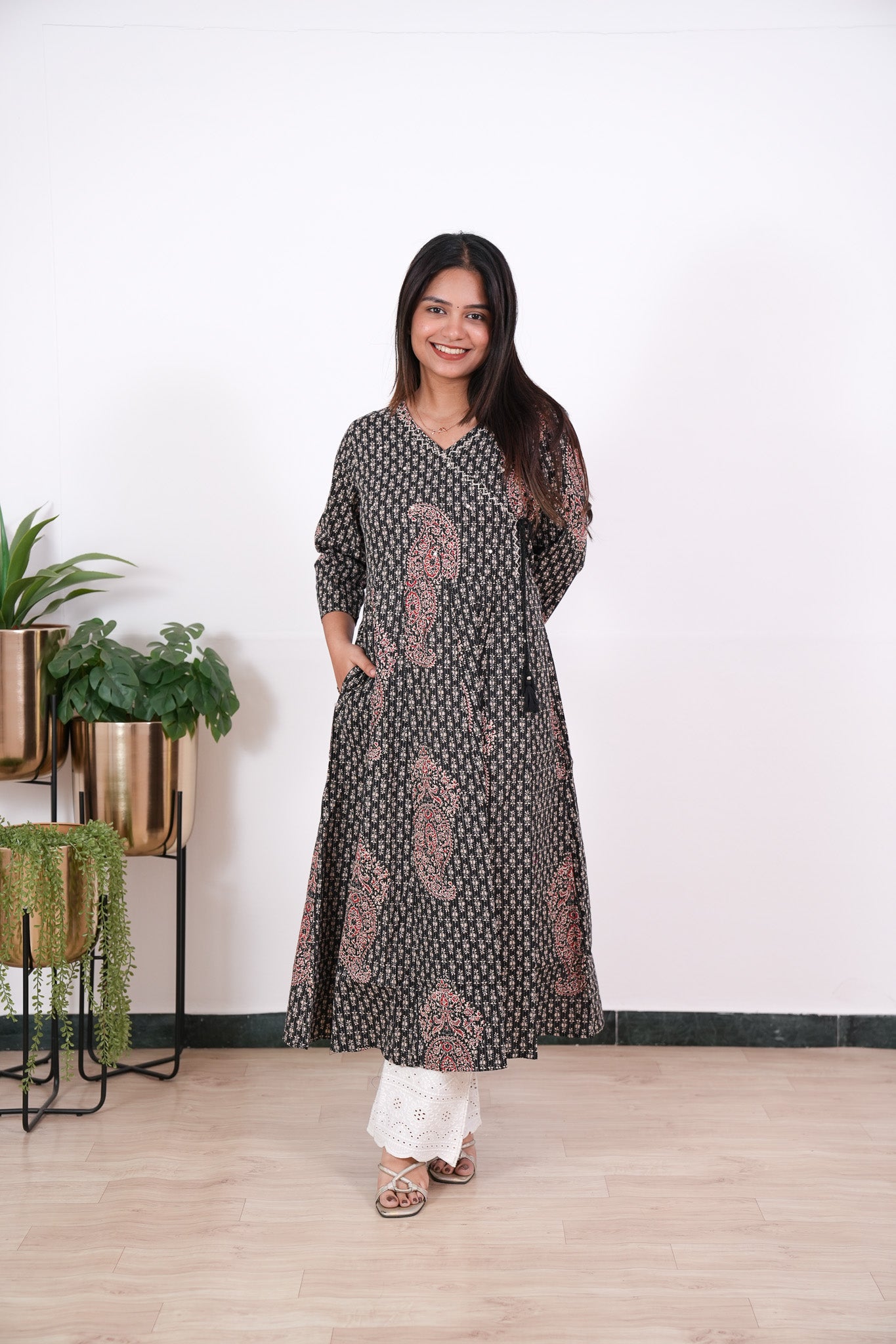 Niraa cotton angrakha kurti- Black