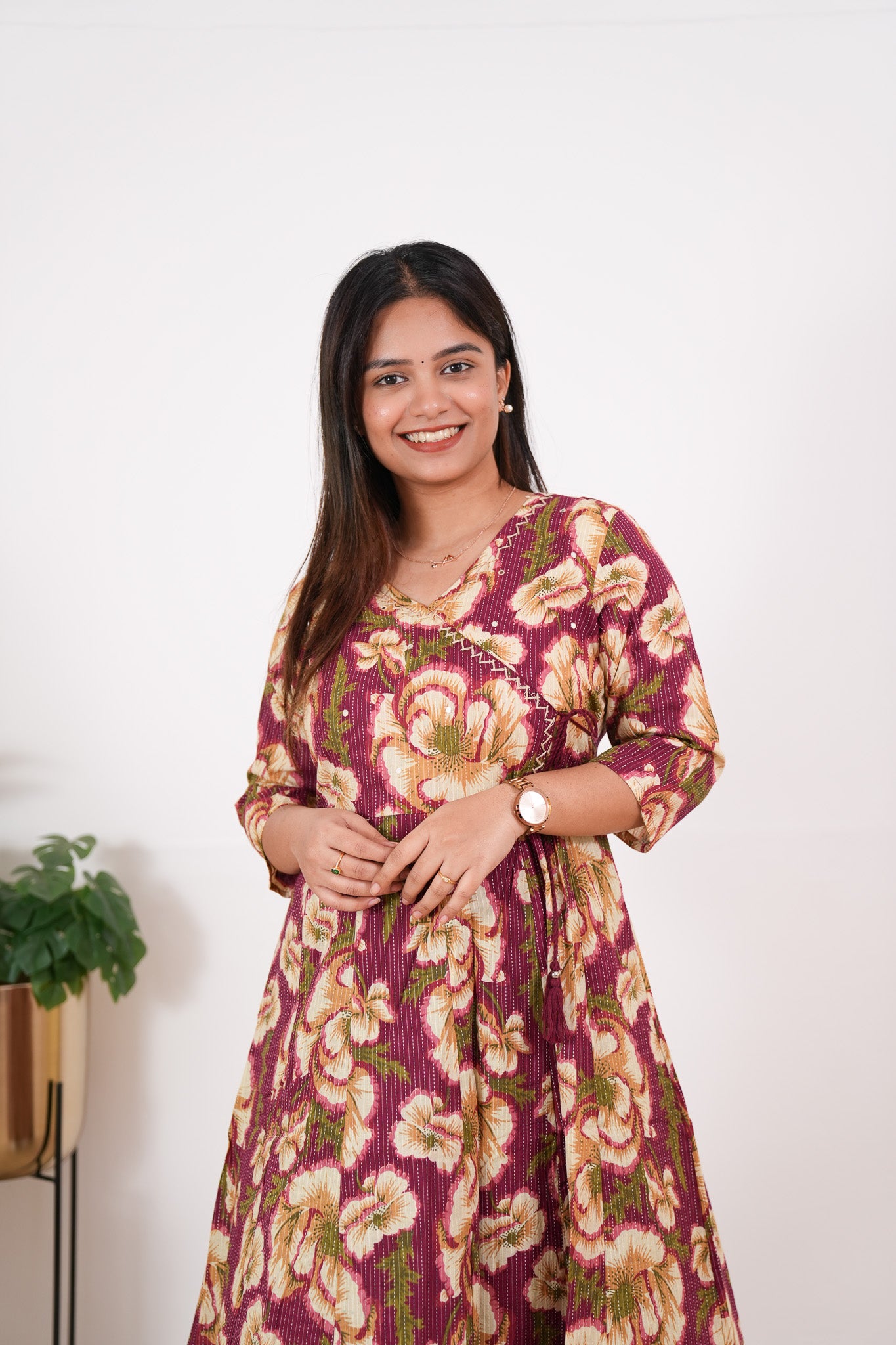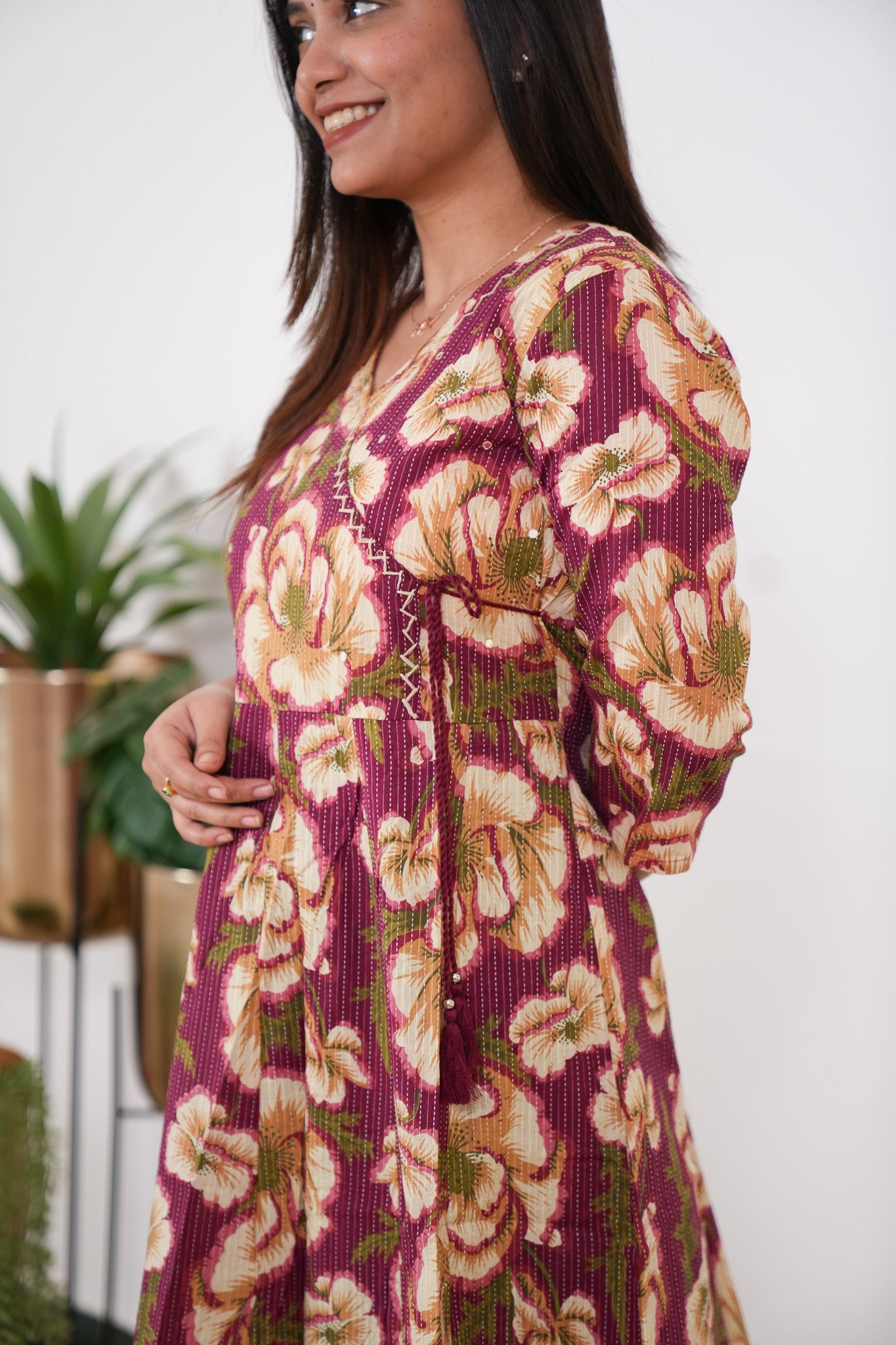 Niraa cotton angrakha kurti-Wine
