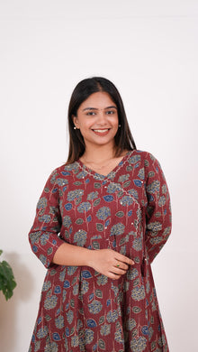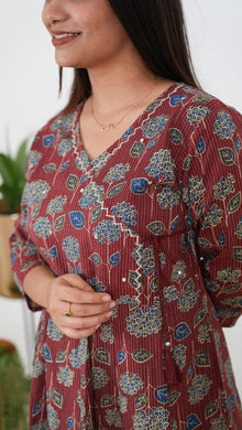 Niraa cotton angrakha kurti-Wine