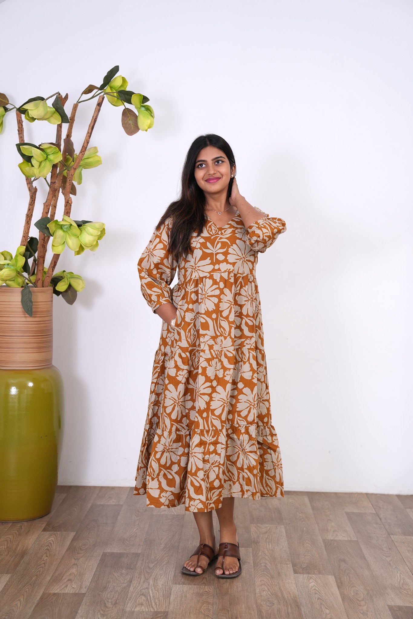 This cotton midi dress has a V neck and elbow length sleeves . This dress is so versatile and so comfortable that you would want to wear it for shopping, brunch plans with girls and even dinner dates. They are 100% cotton.
