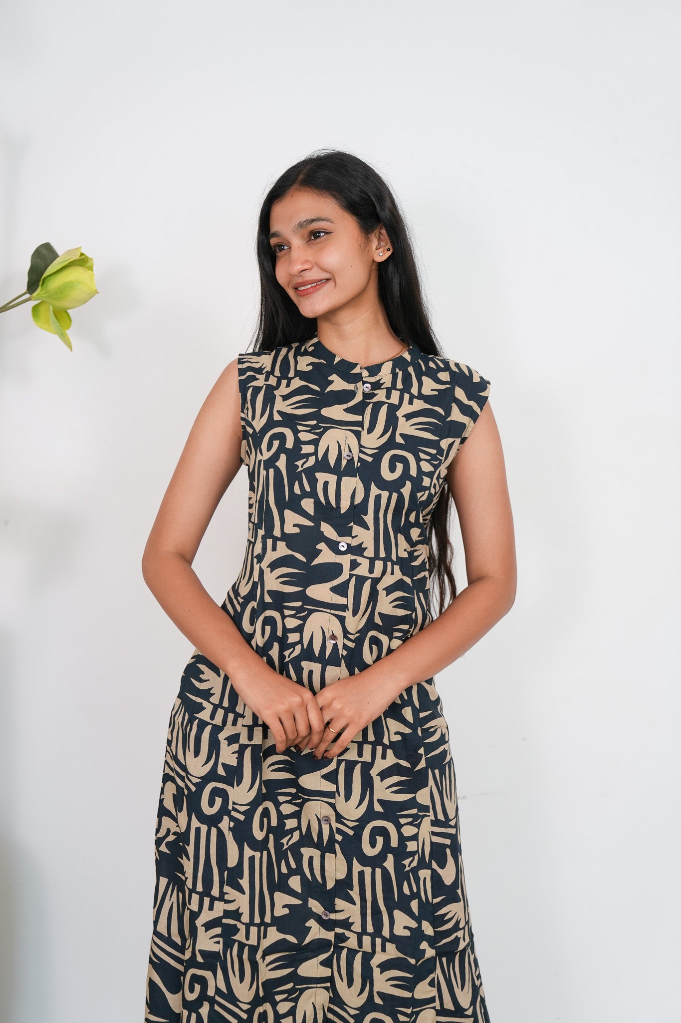 Dark blue mandarin cotton shirt dress that exudes elegance and sophistication. It has buttons running down. Buttons cannot be opened.