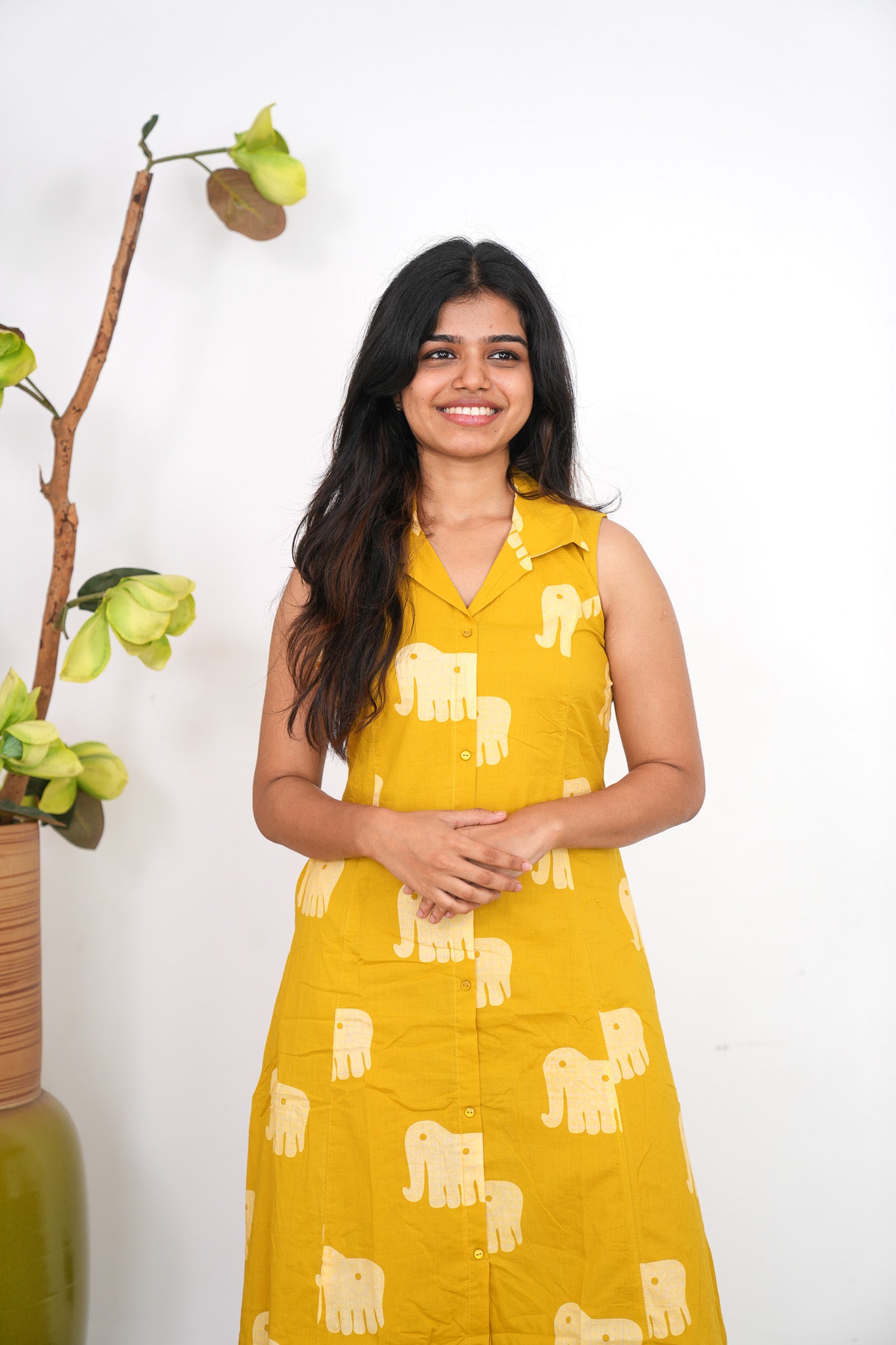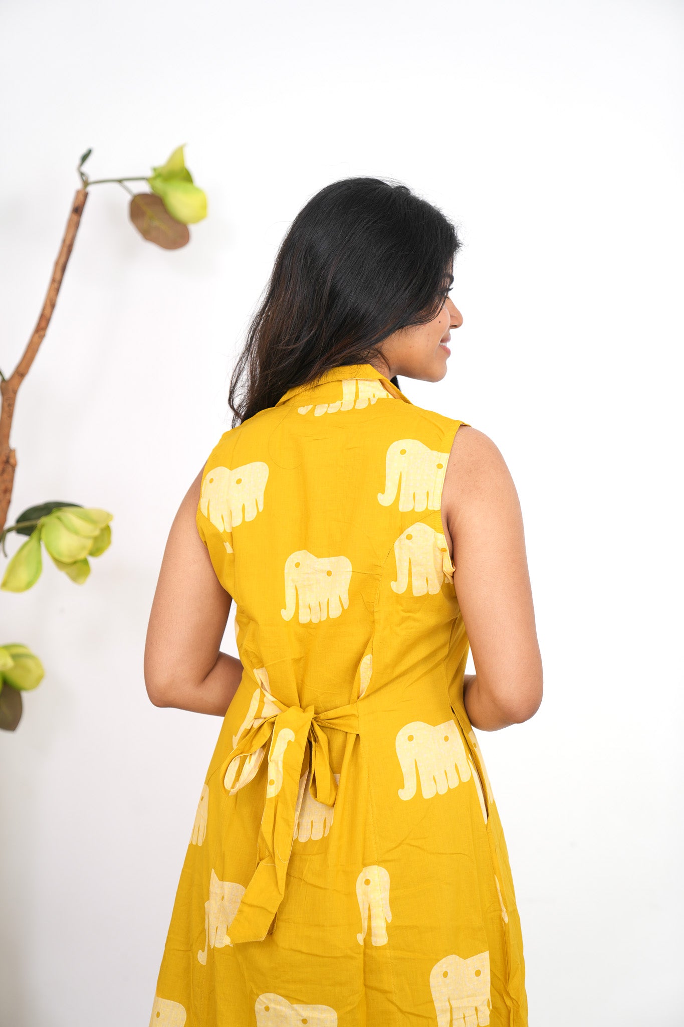 This cotton shirt dress that exudes elegance and sophistication. It has buttons running down which cannot be opened and has a tie at the back.