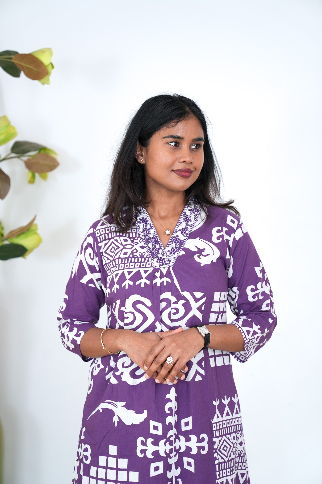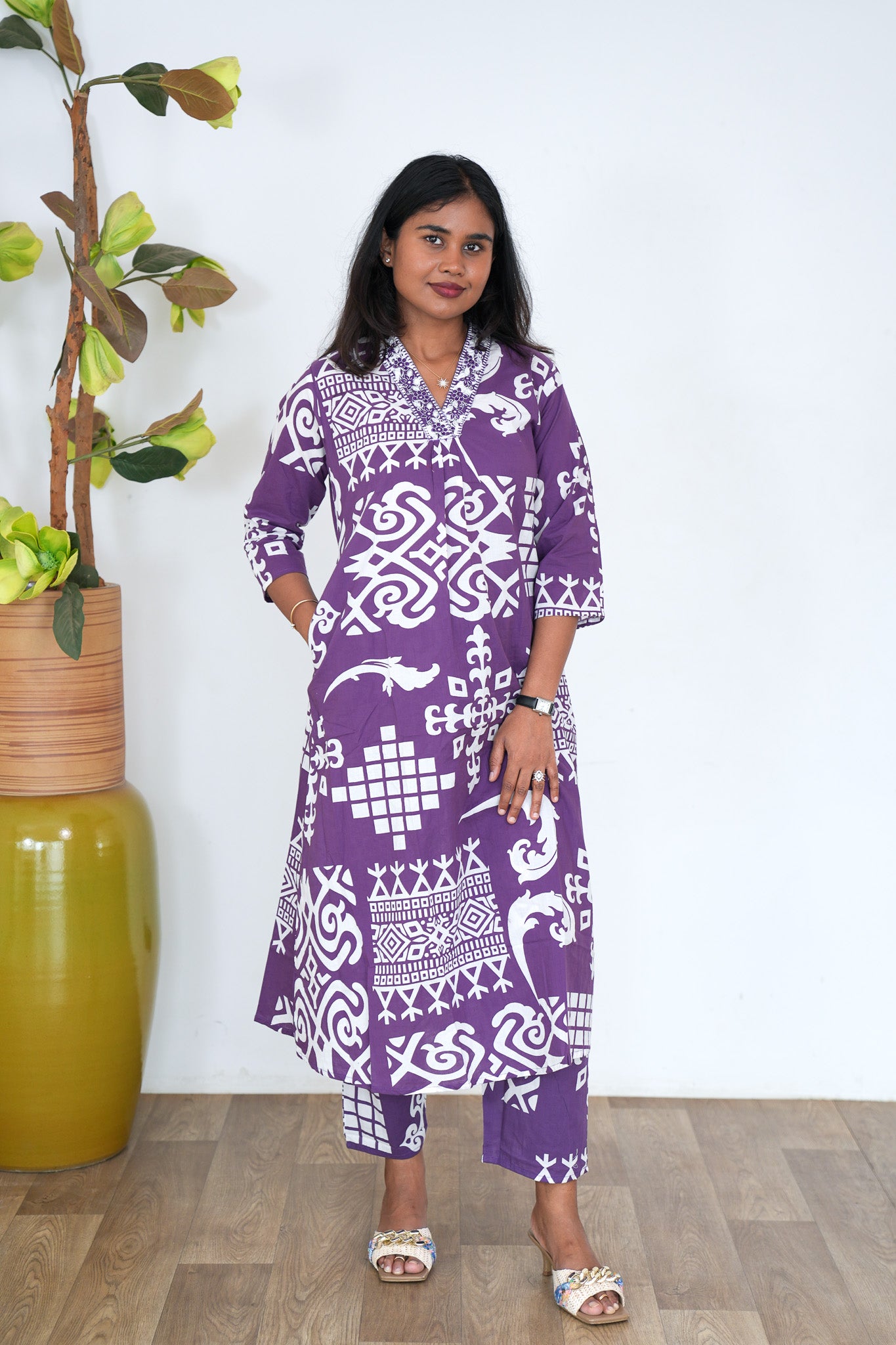 These Co-ords are so cozy, comfortable and chic making it perfect for brunch and a girl's day out! The kurta has a V neck and 3/4 sleeves. Pant comes with elastic and has a palazzo fit.