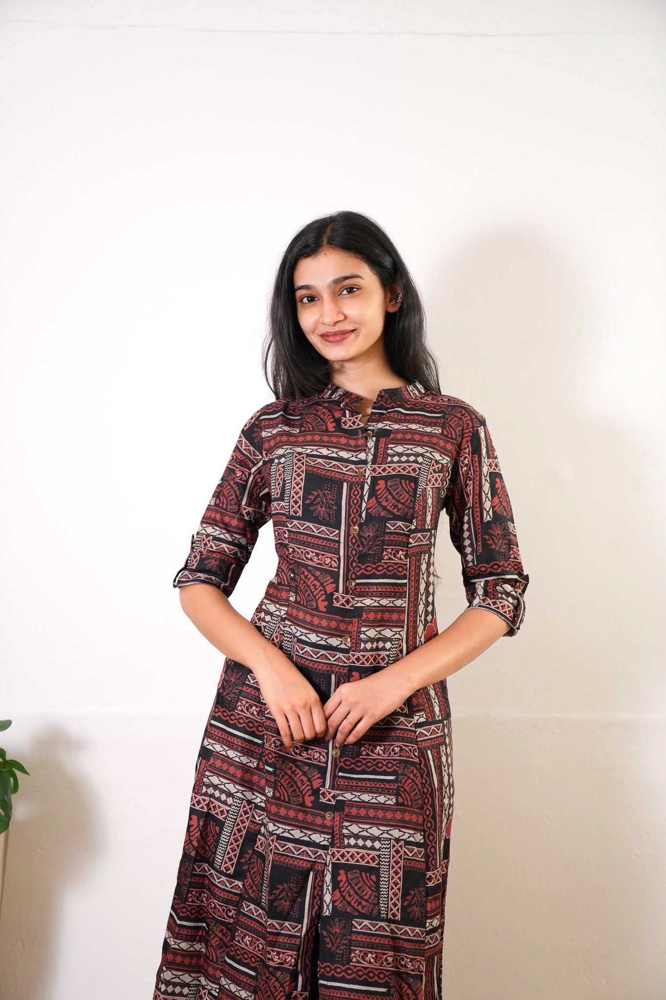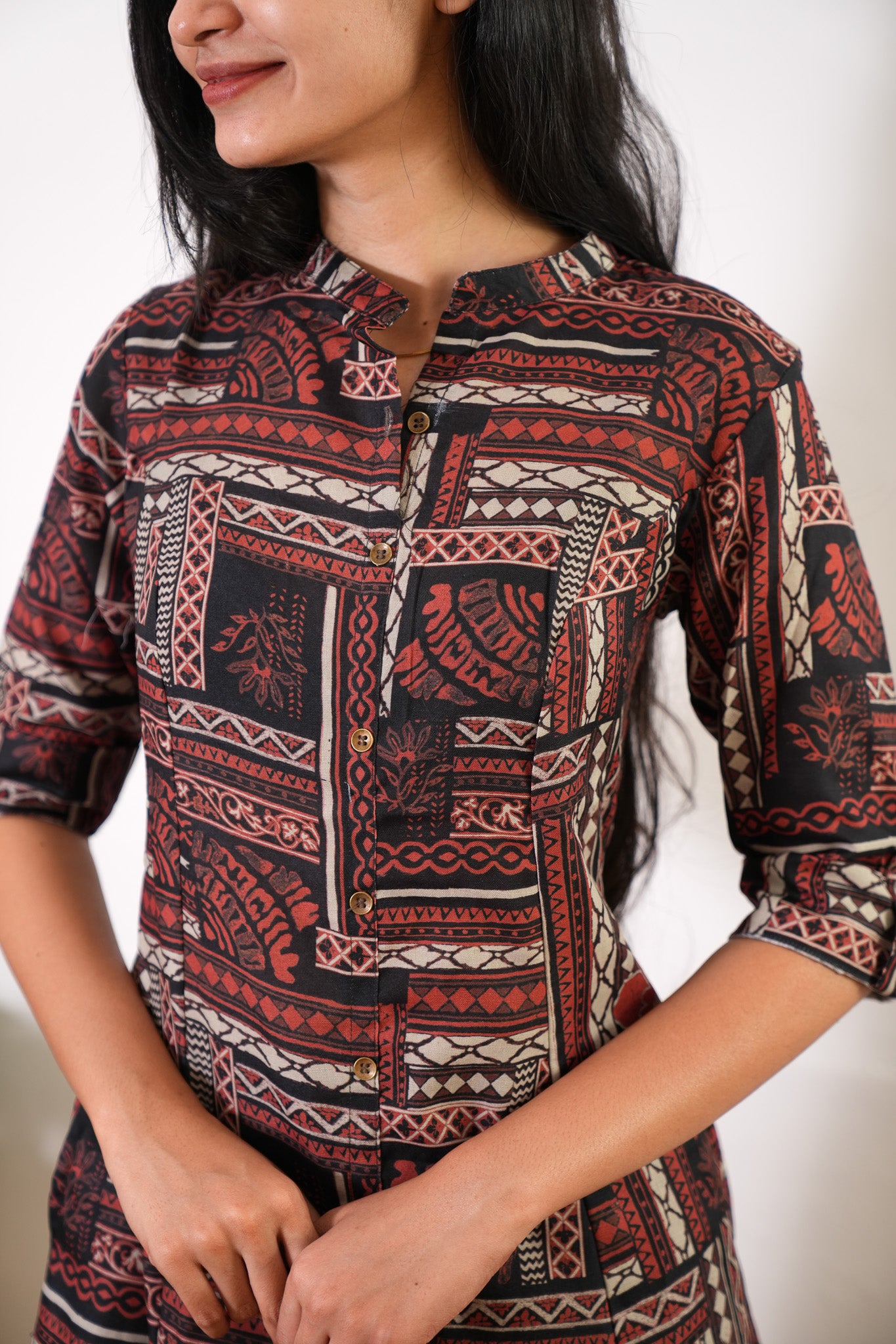Niraa cotton angrakha kurti- Sindoor
