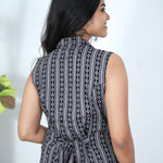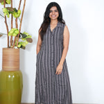 Dark Black stripes cotton shirt dress(attached sleeves)
