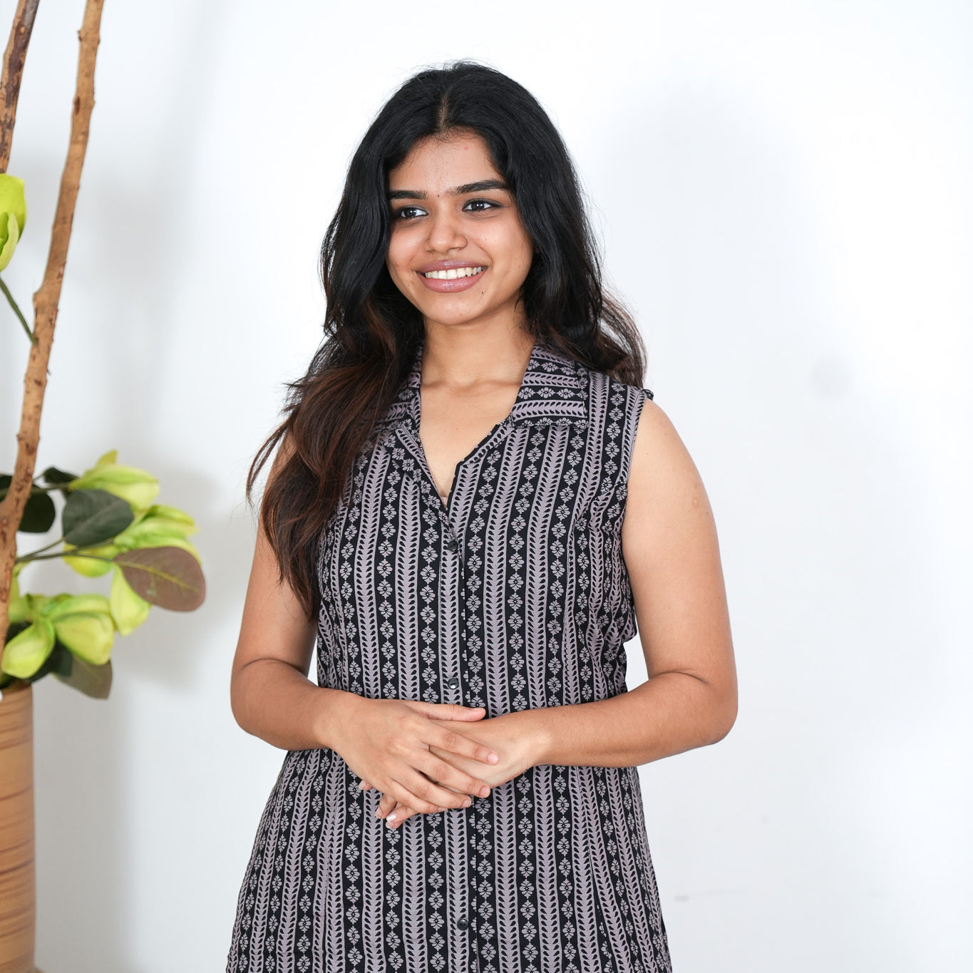 Black cotton shirt dress that exudes elegance and sophistication. It has buttons running down. Buttons cannot be opened.