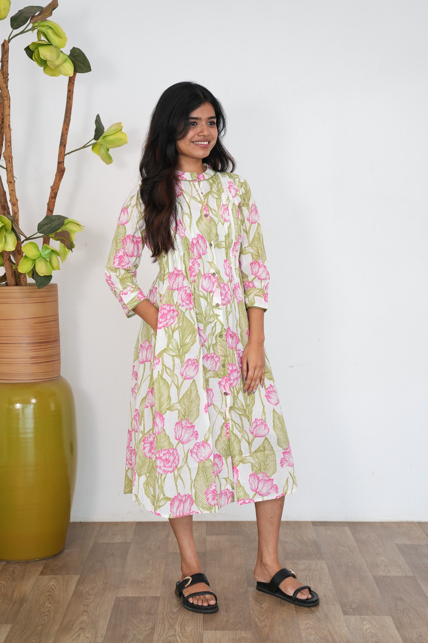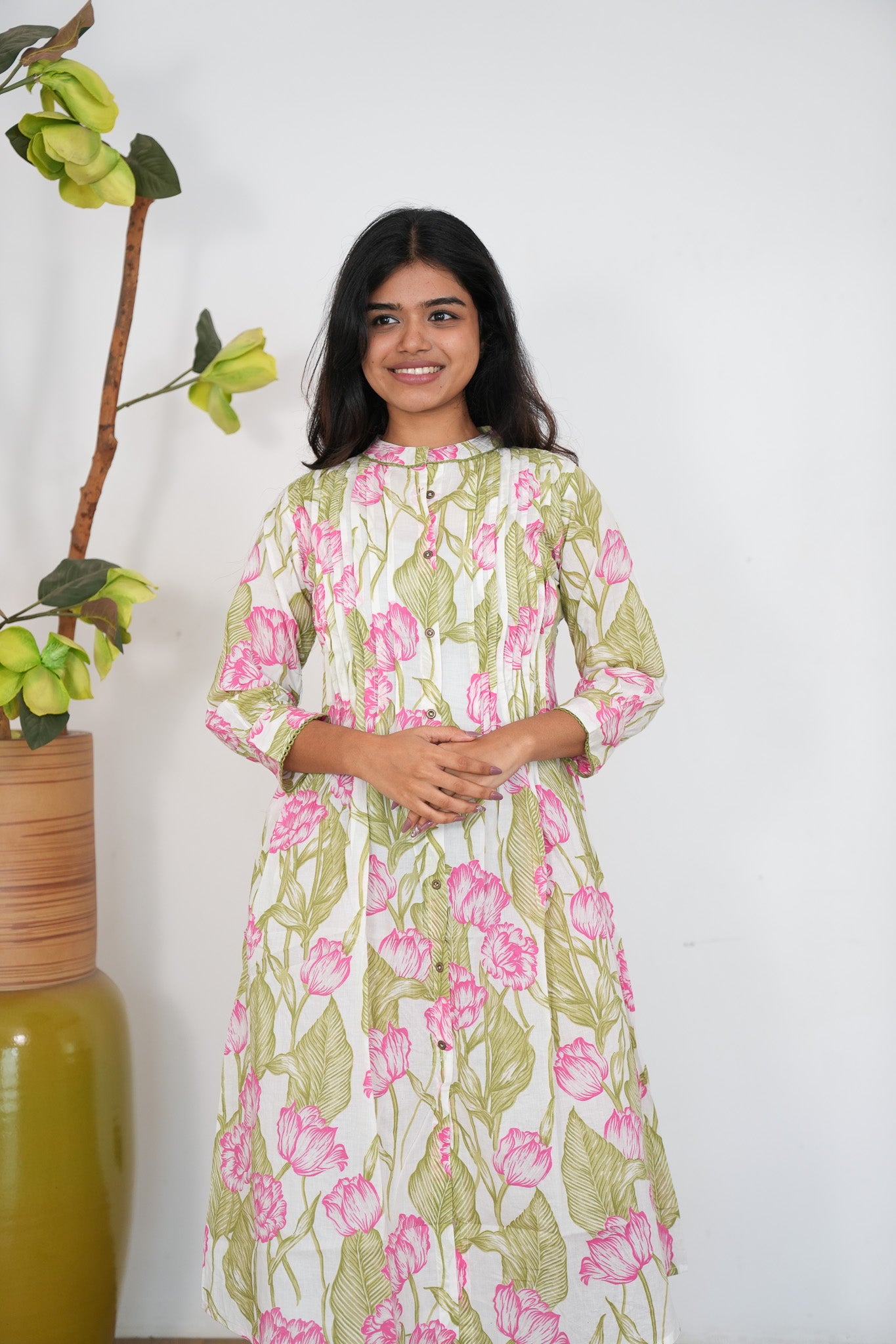 The kurti comes with mandarin neck and elbow length sleeves and with vibrant colour mixtures. It can be paired with cotton pants or jeans to pull of that comfortable look!!