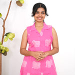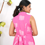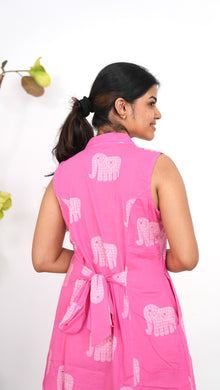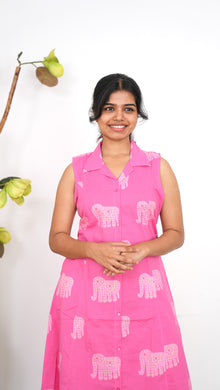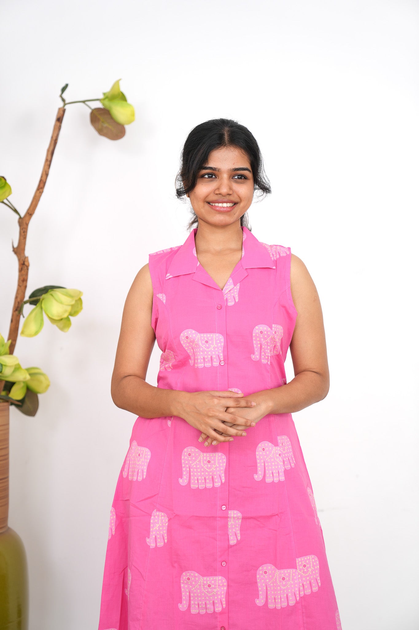 This cotton shirt dress that exudes elegance and sophistication. It has buttons running down which cannot be opened and has a tie at the back.