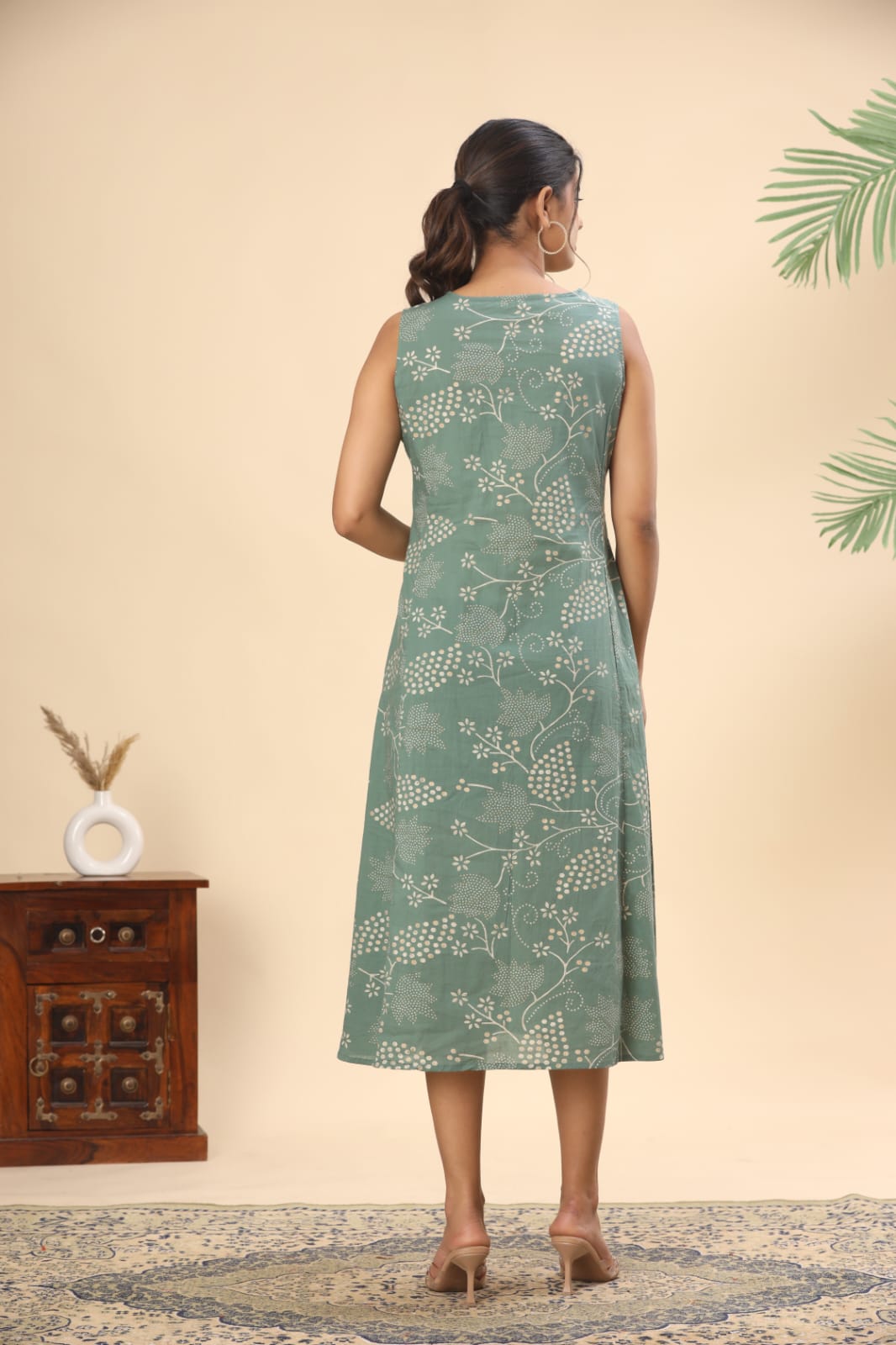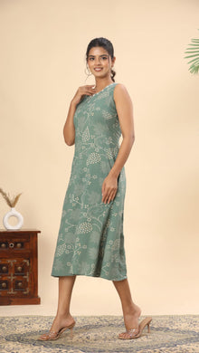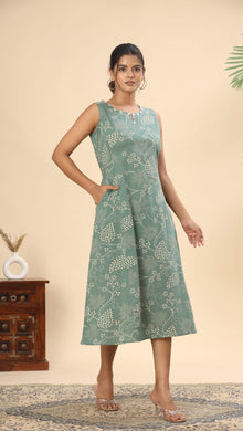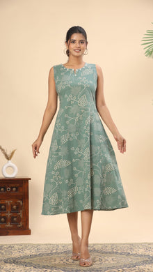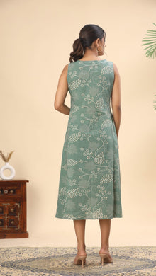 Olive green tie and dye cotton midi dress