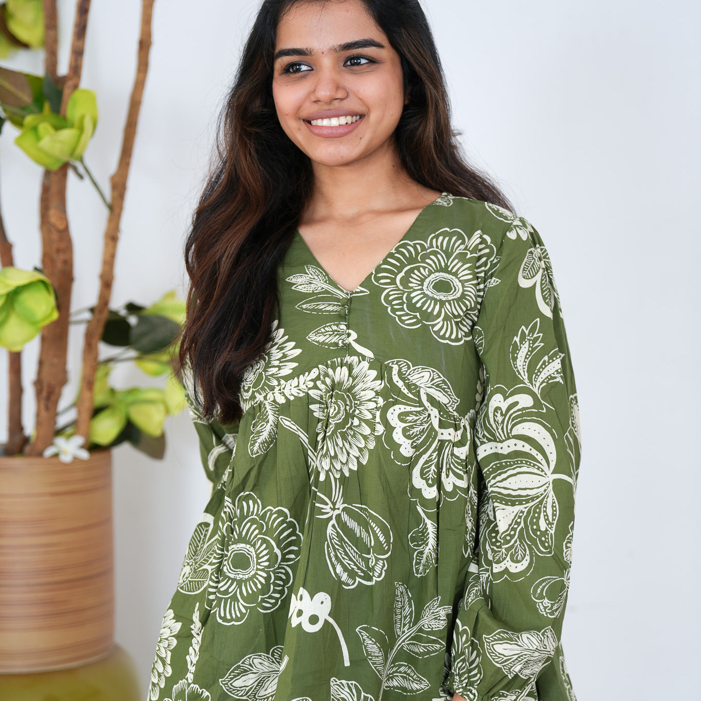 The top has V neck and elbow length sleeves. It has beautiful floral pattern all over the top with peplum style. It can be paired with jeans or skirt to complete the look.