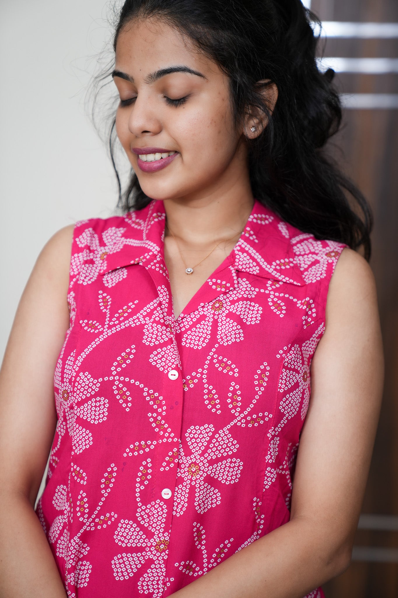 Pink cotton shirt dress that exudes elegance and sophistication. It has buttons running down.