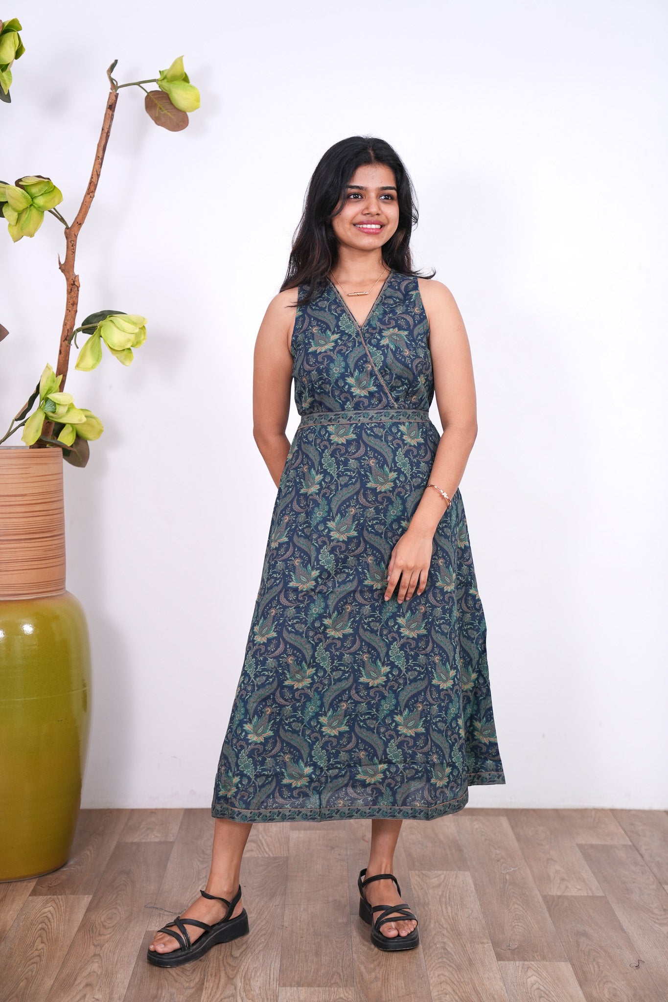 This cotton waist dress has a V neck and halter cut with tie at the back . This dress is so versatile and so comfortable that you would want to wear it for shopping, brunch plans with girls and even dinner dates.