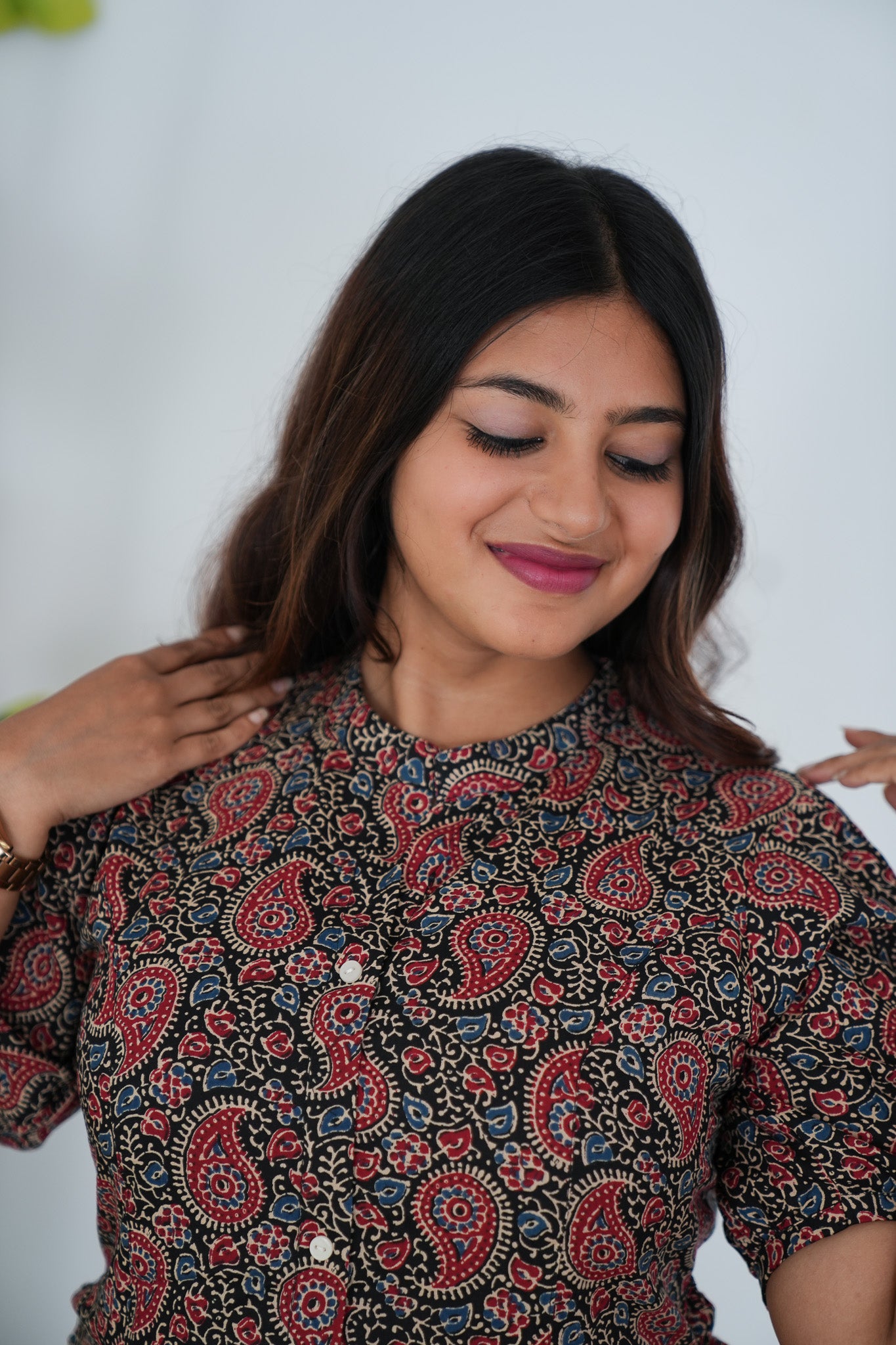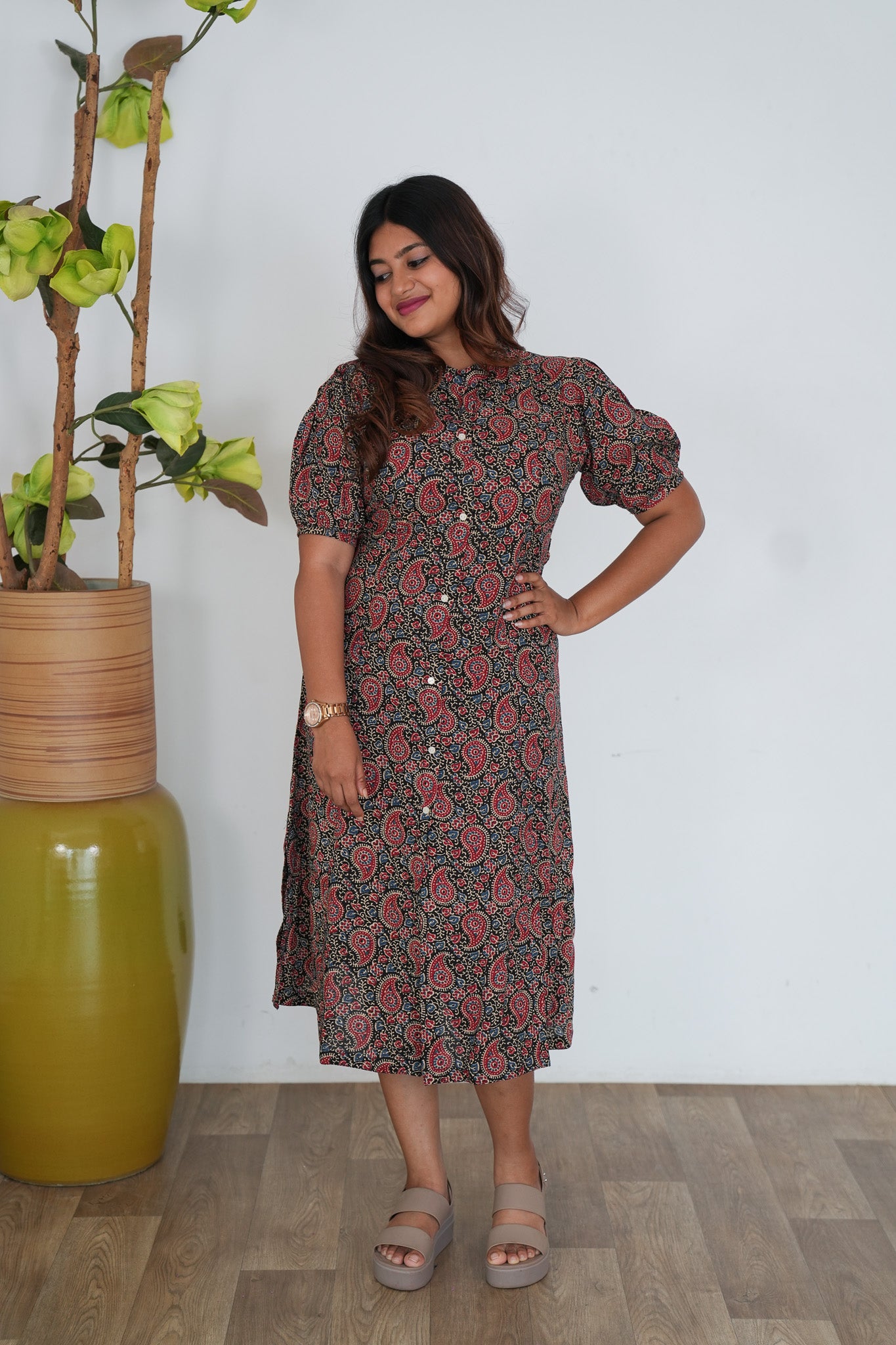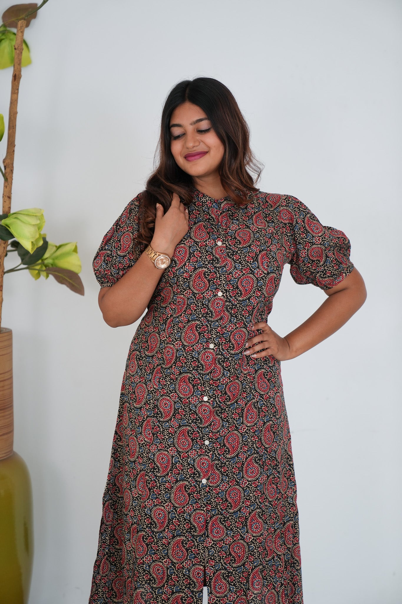 Black cotton shirt dress that exudes elegance and sophistication. It has buttons running down. Buttons cannot be opened.