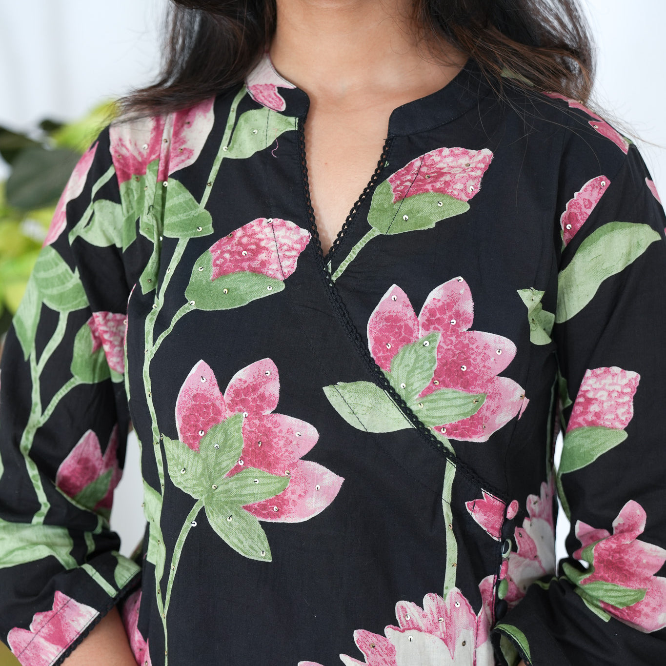 Black angrakha cotton co-ords set which can be paired together or with jeans for a easy breezy summer outfit.