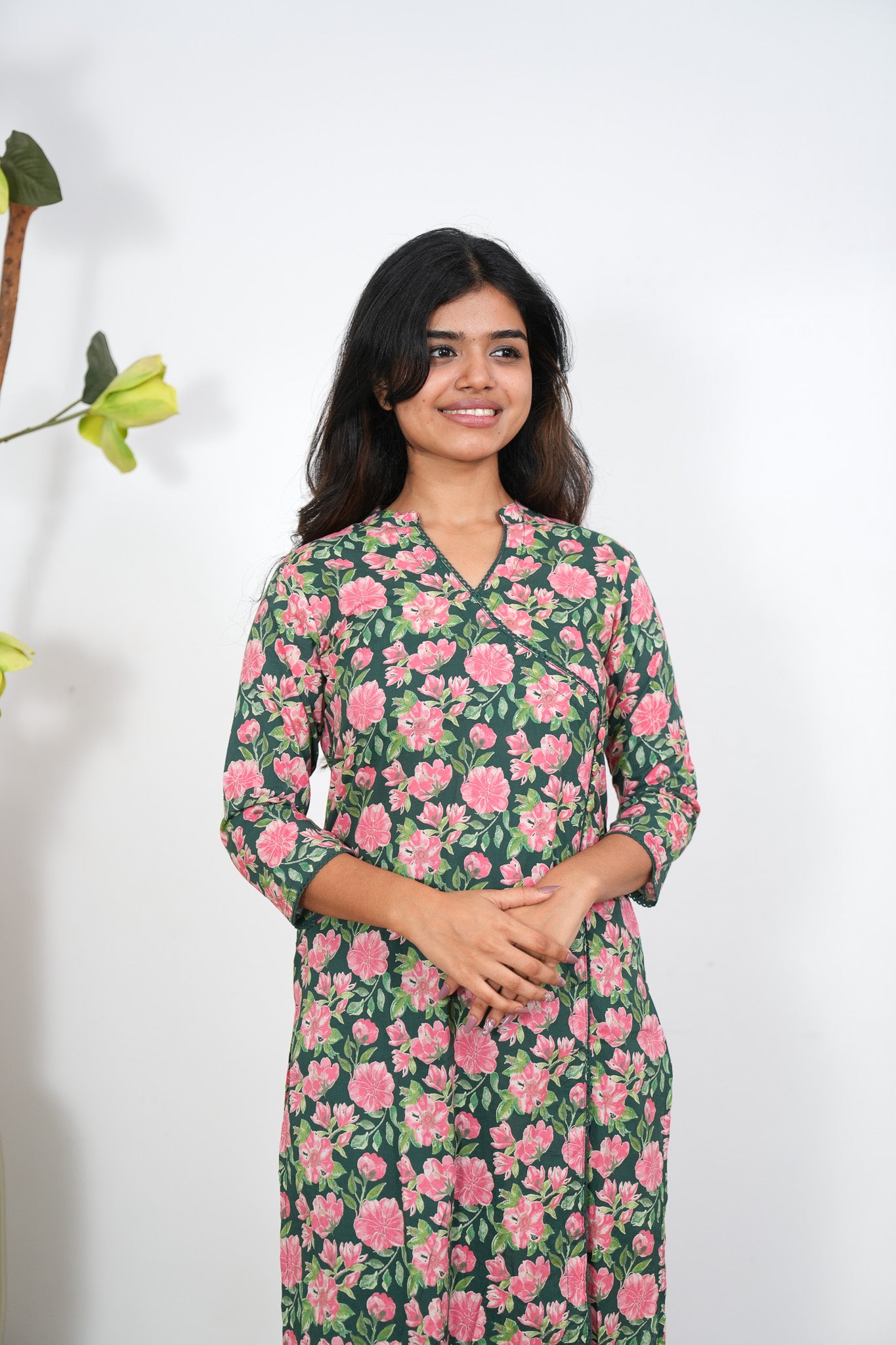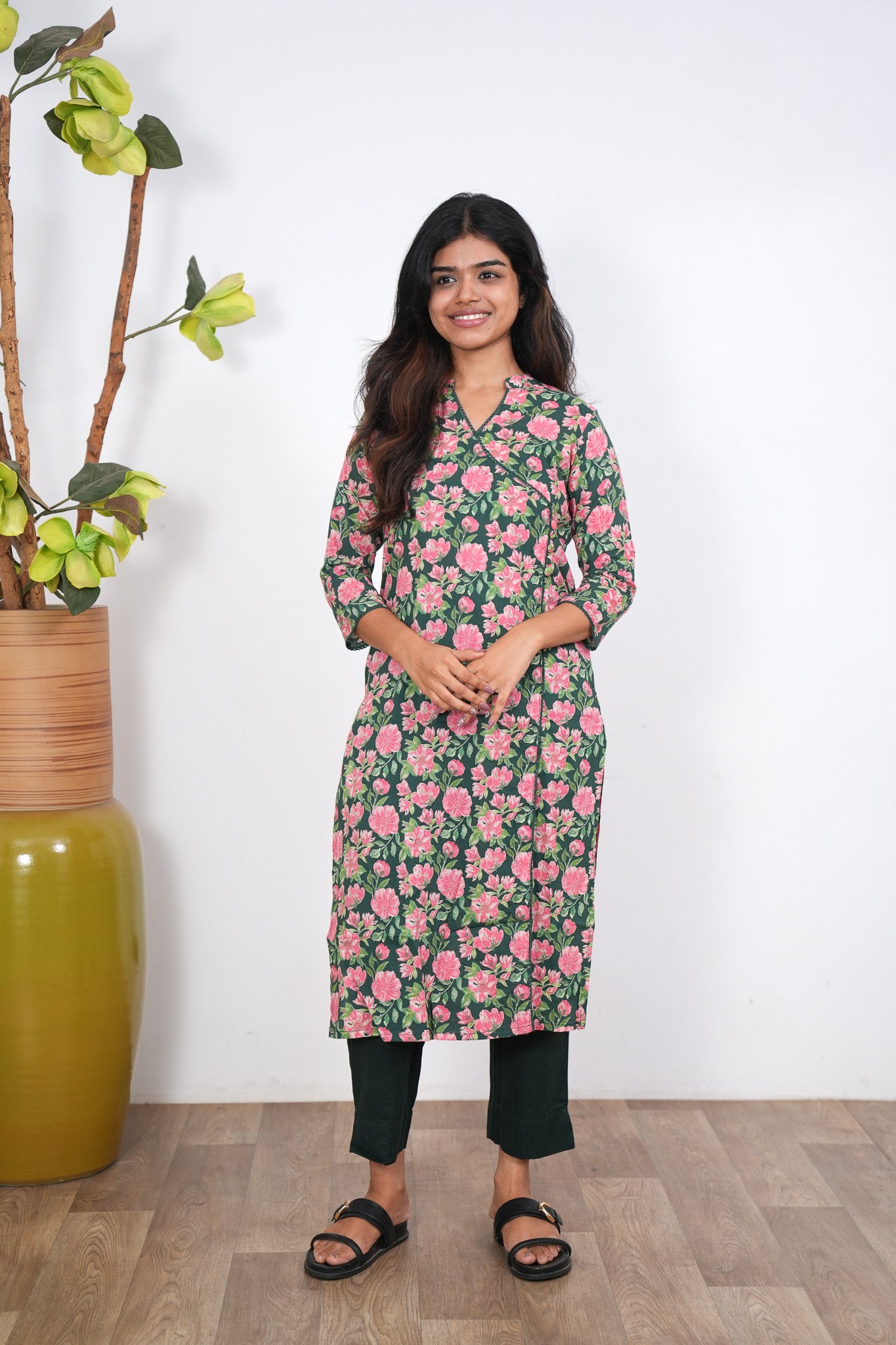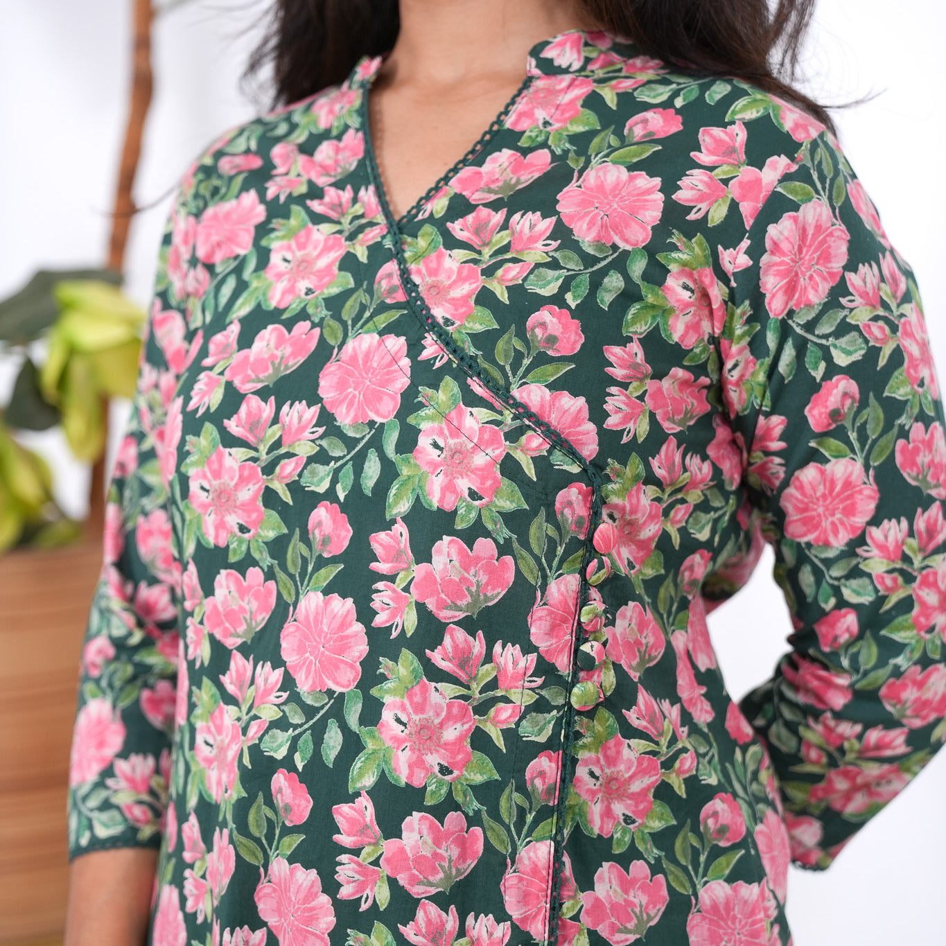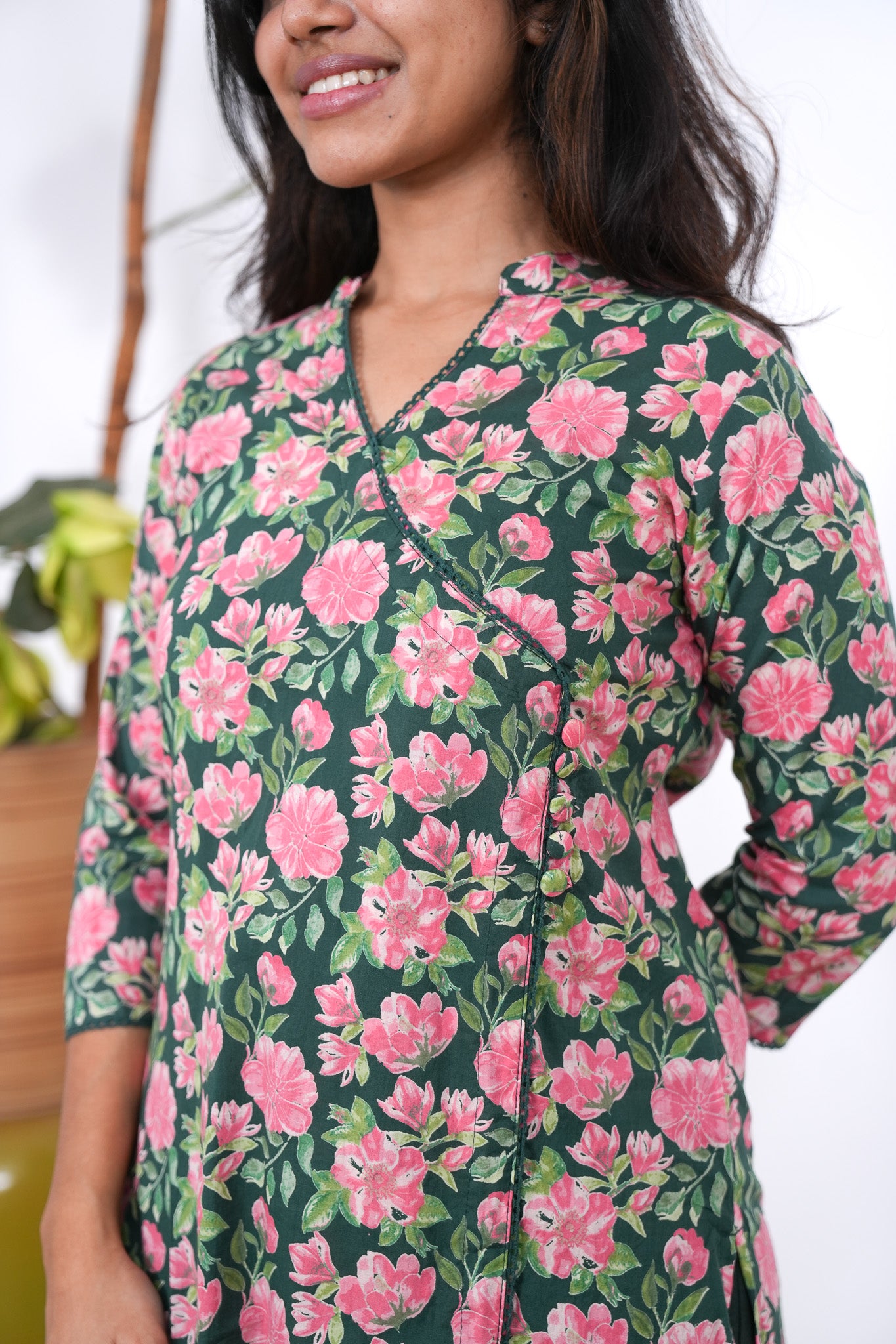Peacock blue tulips angrakha cotton co-ords set which can be paired together or with jeans for a easy breezy summer outfit.