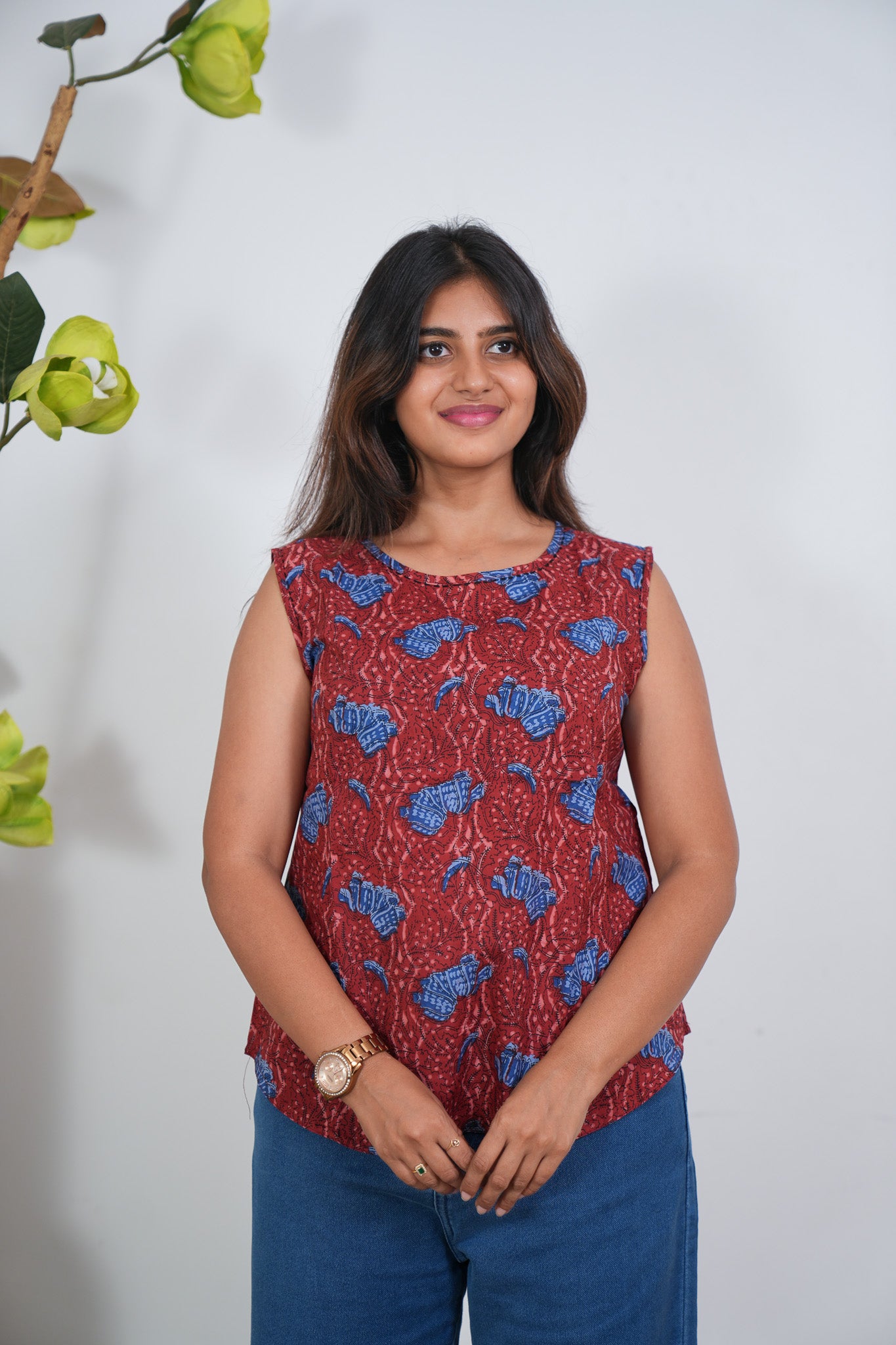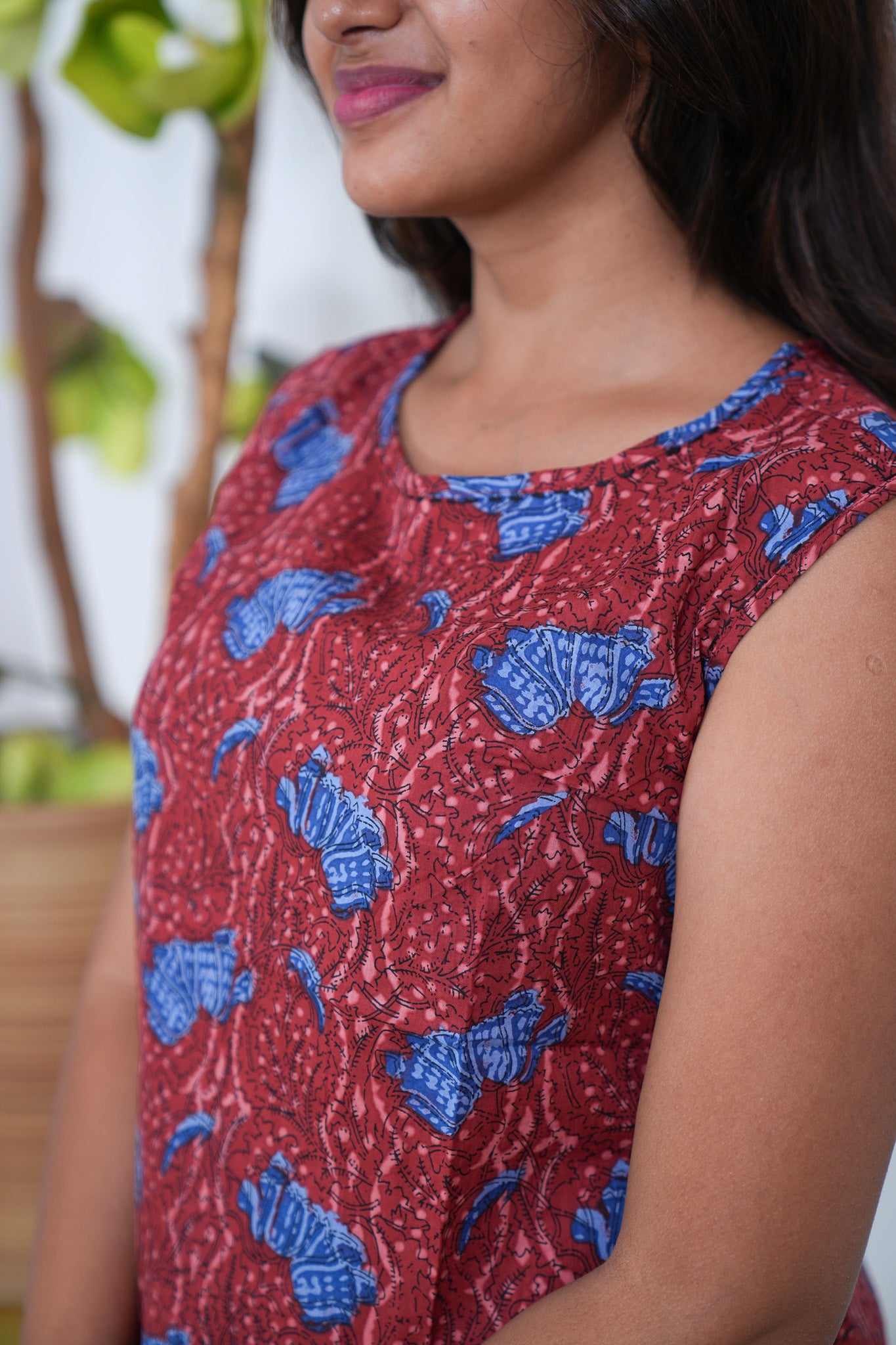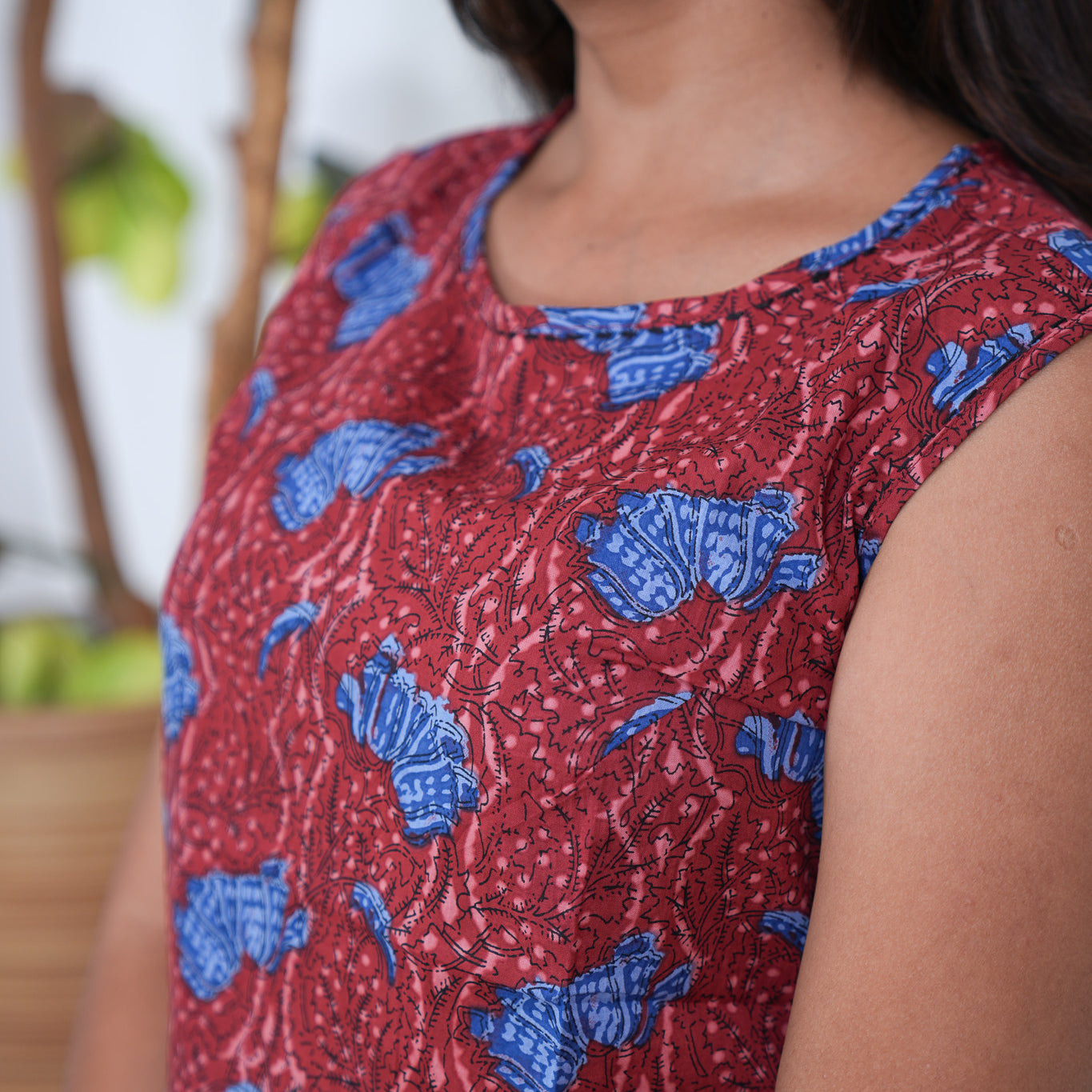 Ritu cotton tunic(attached sleeves)-Red