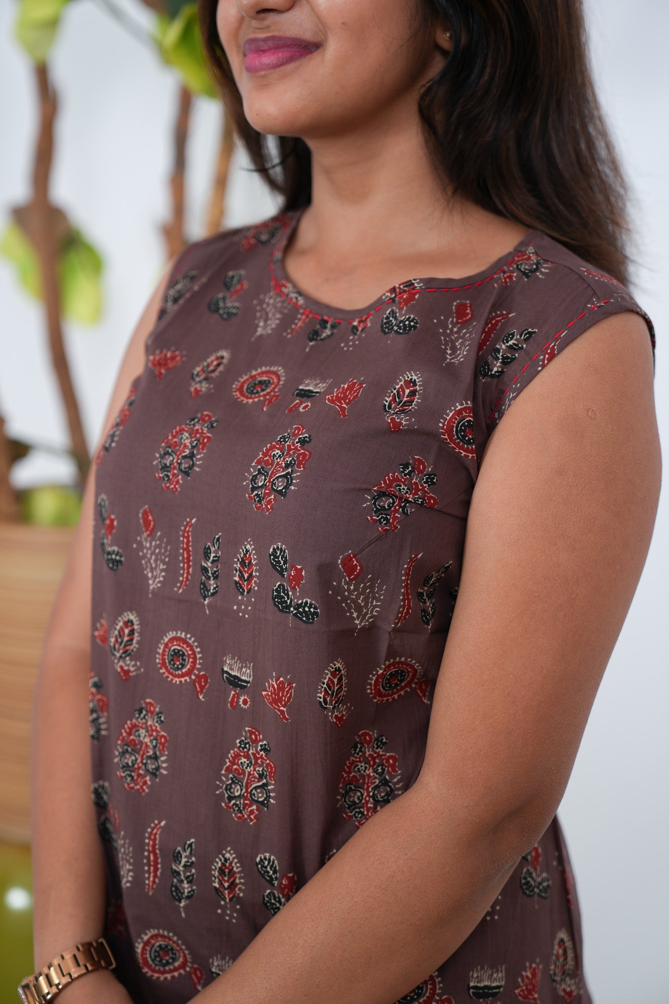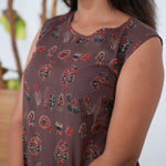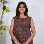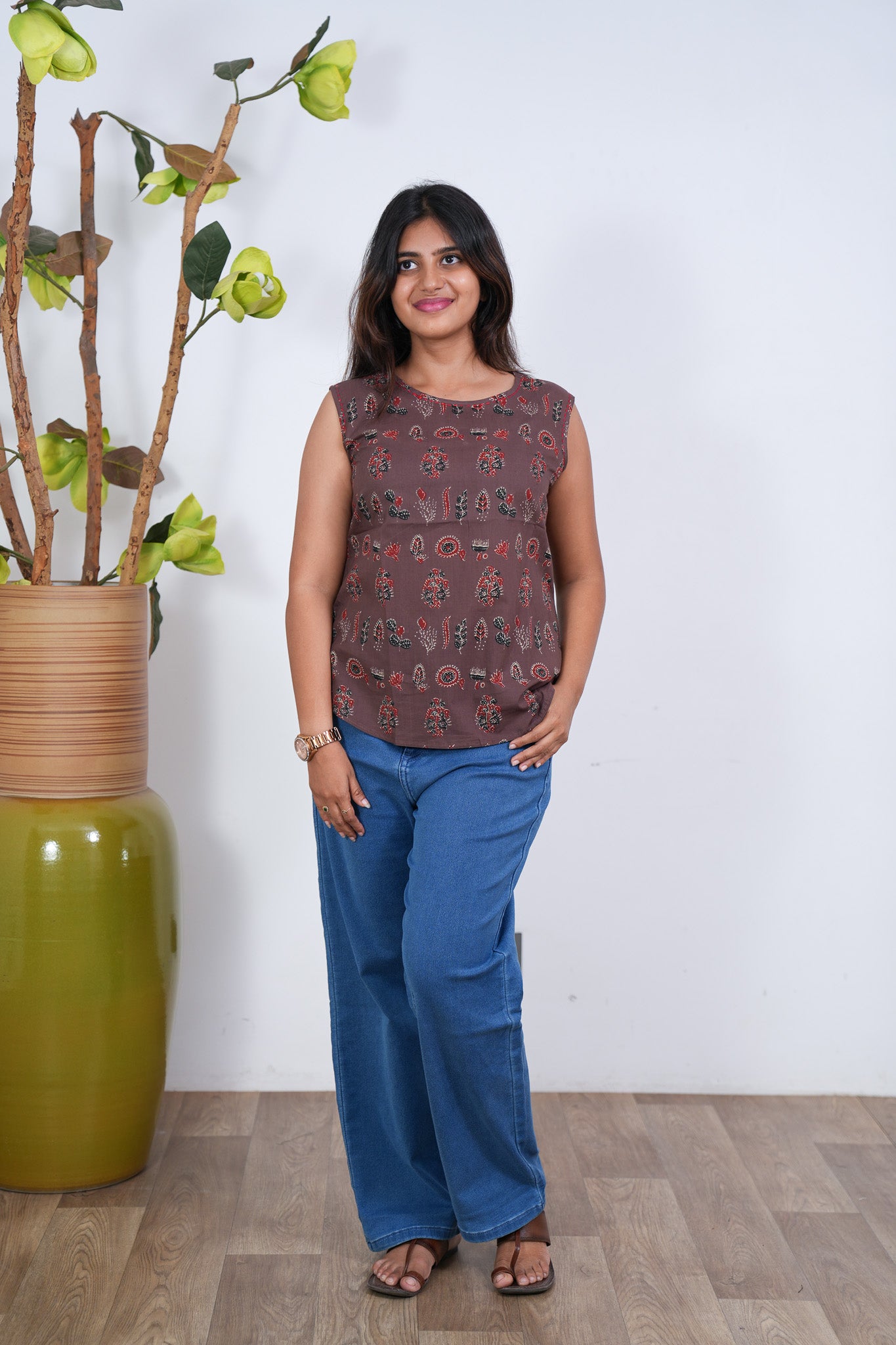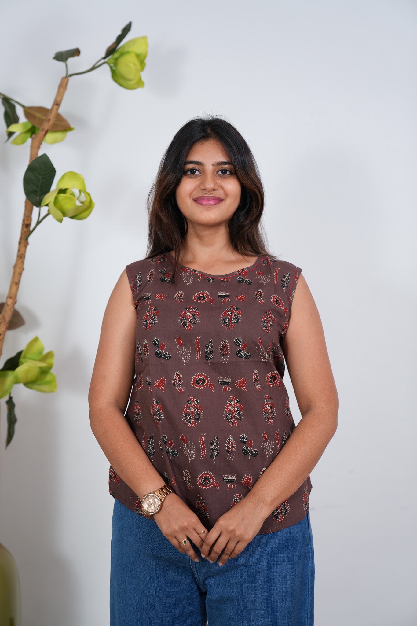 The tunic has round neck and it has attached sleeves. It has beautiful pattern all over the top.  It can be paired with jeans or skirt to complete the look.