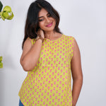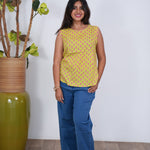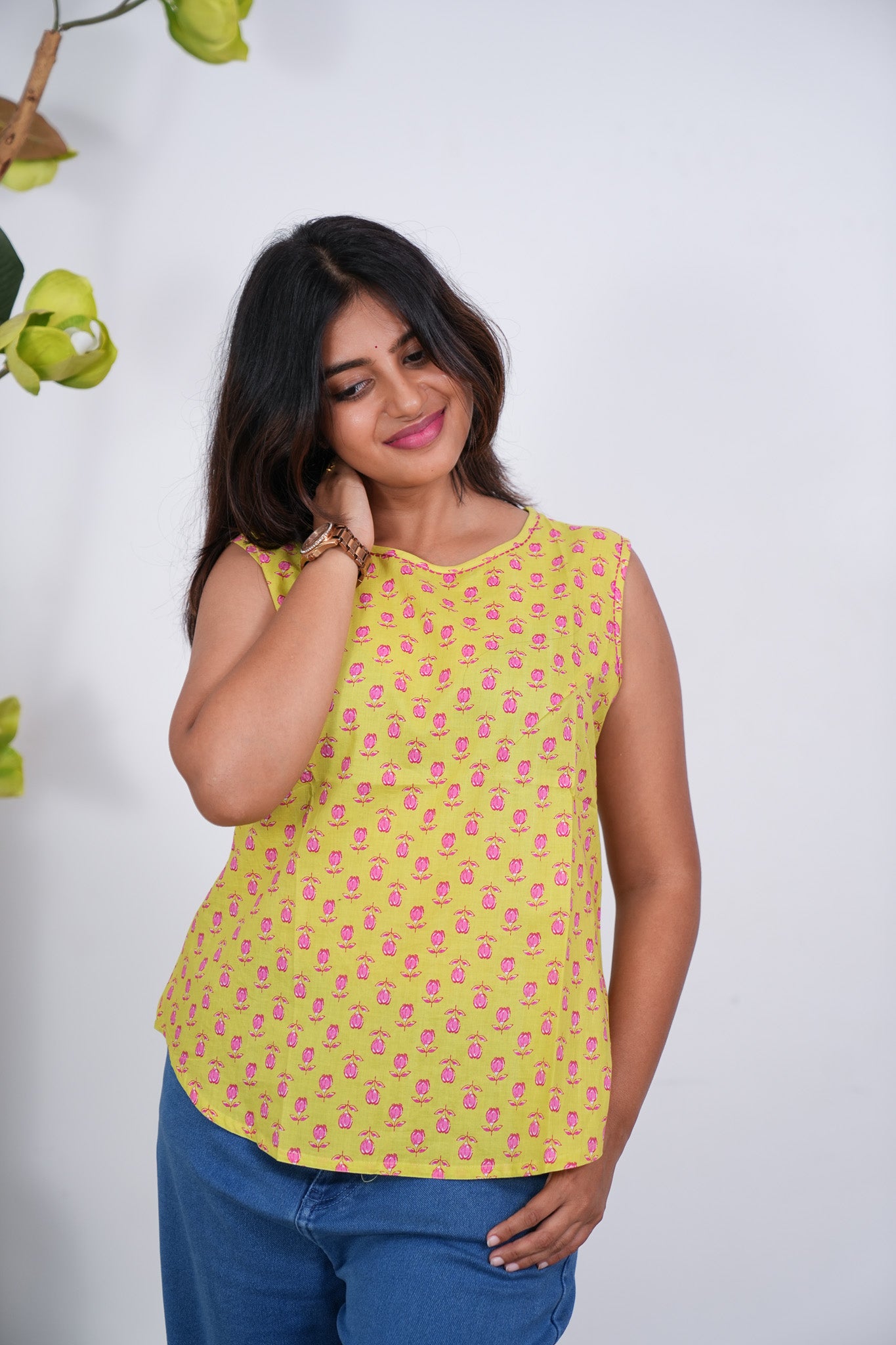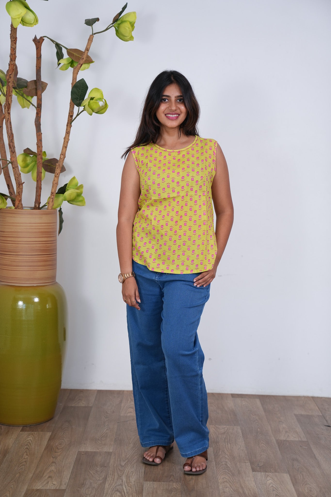 The tunic has round neck and it has attached sleeves. It has beautiful pattern all over the top.  It can be paired with jeans or skirt to complete the look.