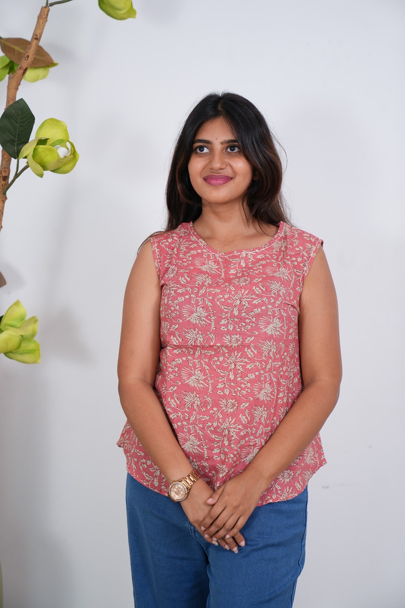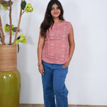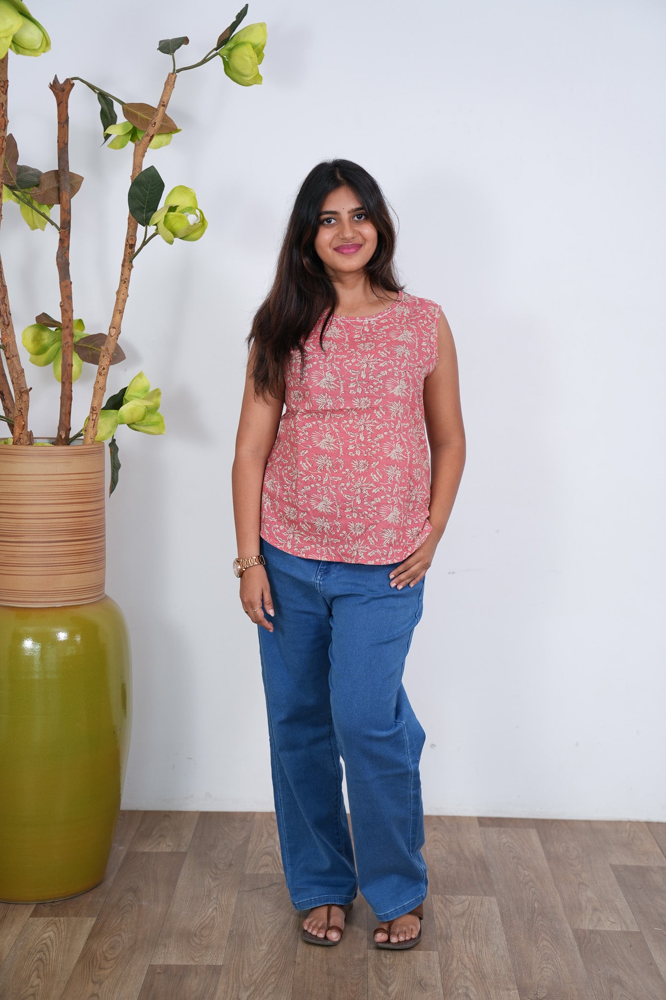 The tunic has round neck and it has attached sleeves. It has beautiful pattern all over the top.  It can be paired with jeans or skirt to complete the look.