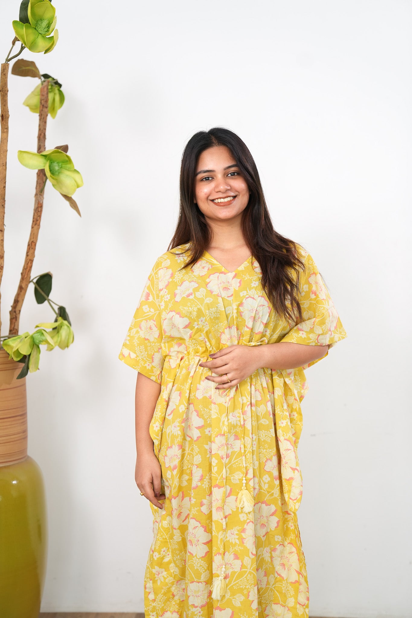 Butter yellow cotton kaftan