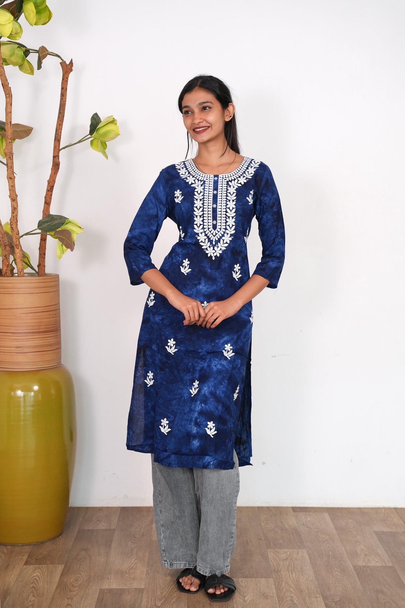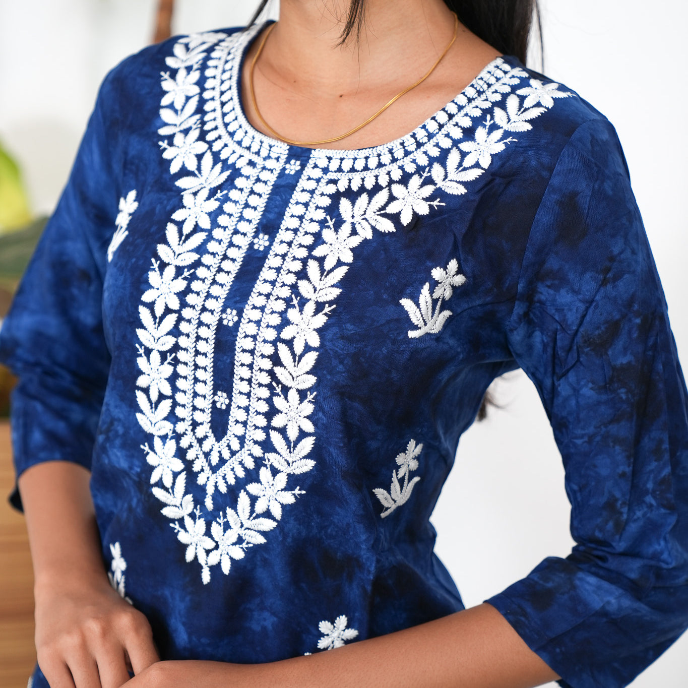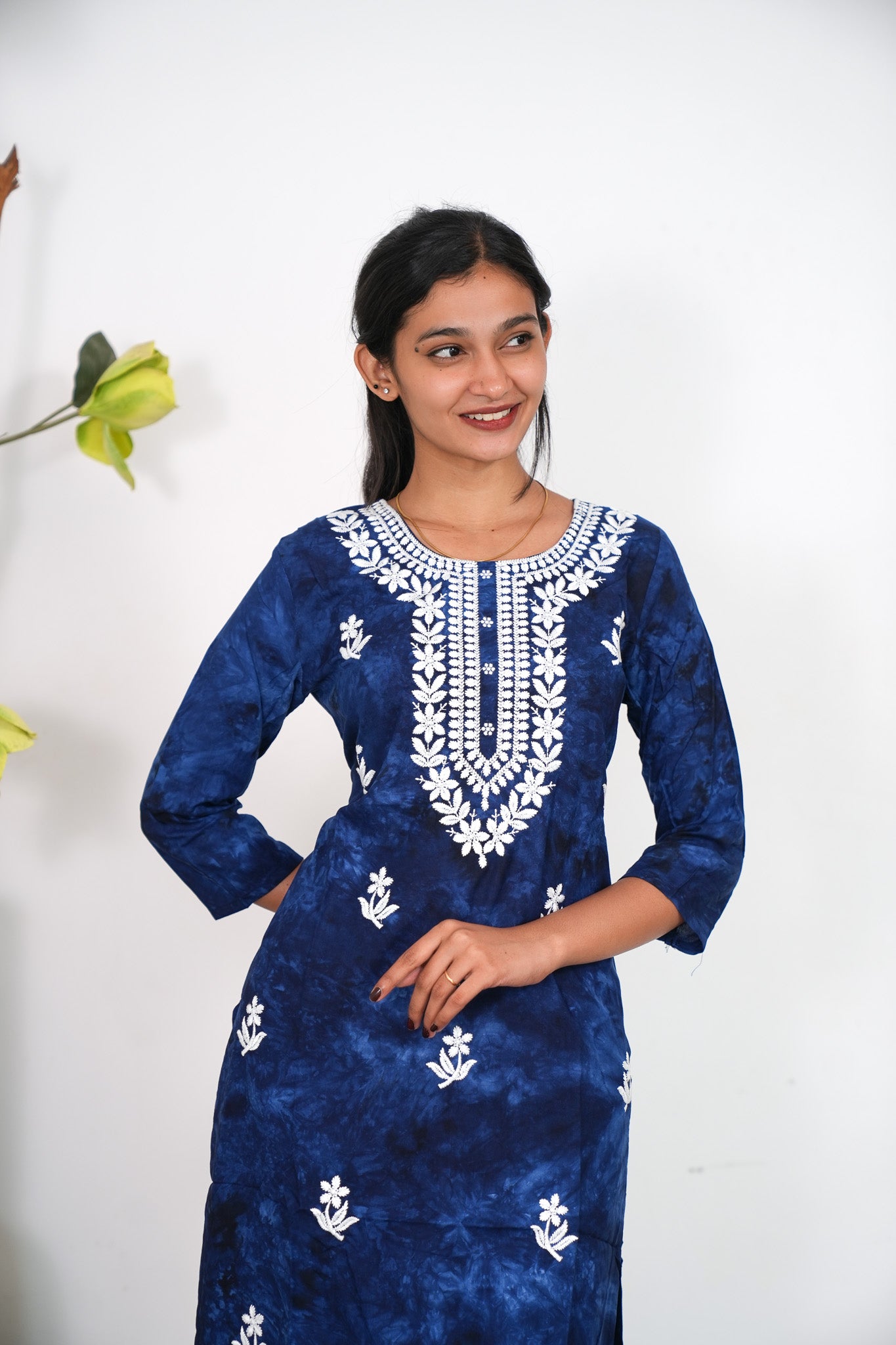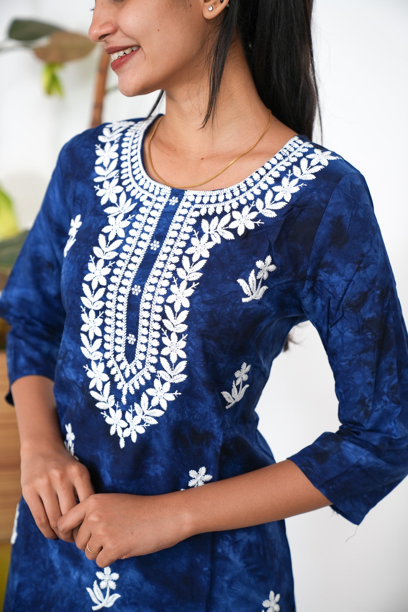 Royal blue chikankari cotton kurti