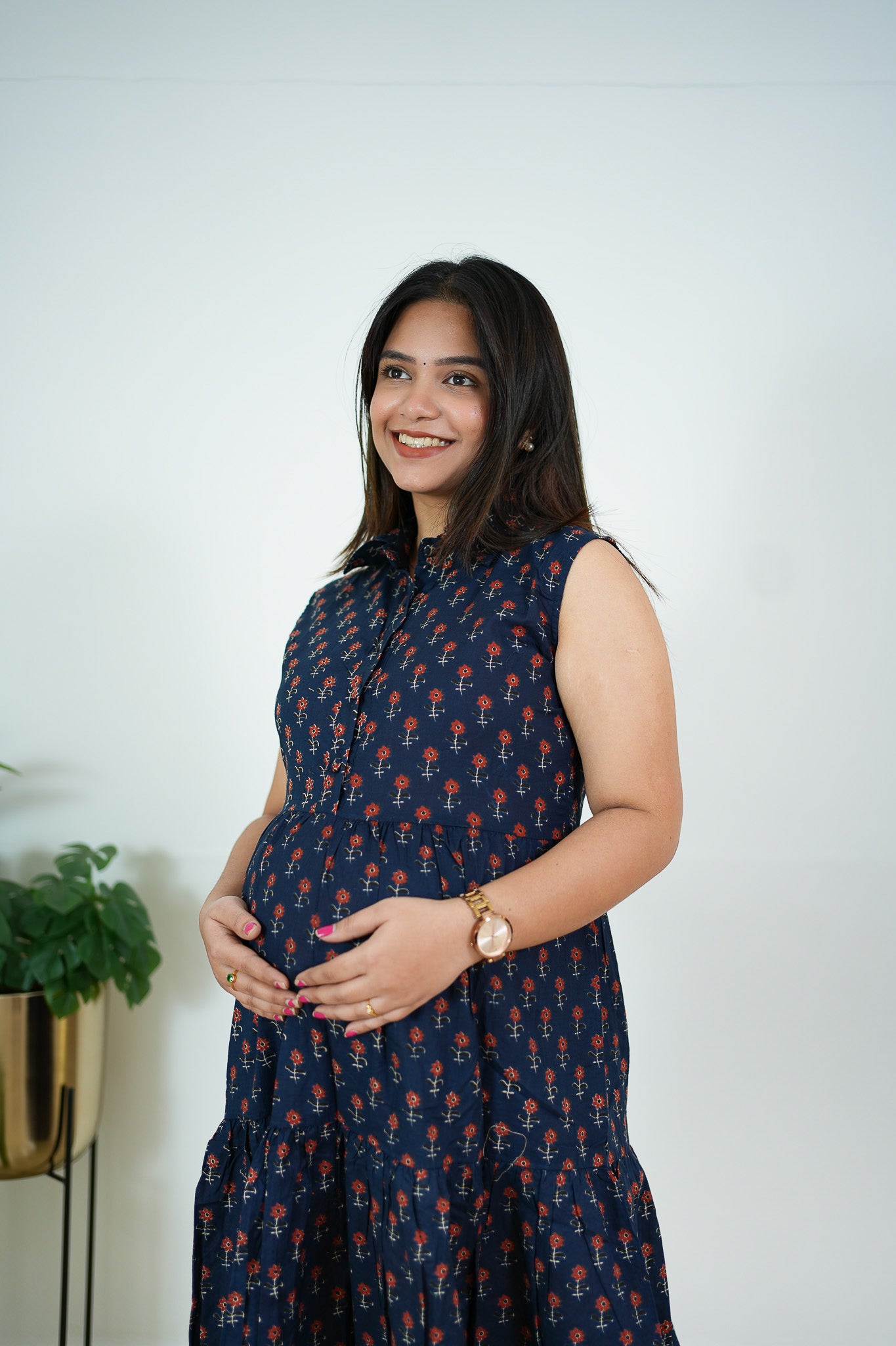 The shirt dress totally amps up your maternity style because why cant moms have all the fun!! It comes with a chic collar with openable buttons for the ease of nursing. There is a flare from waist onwards to fit your bump. It comes with pockets.