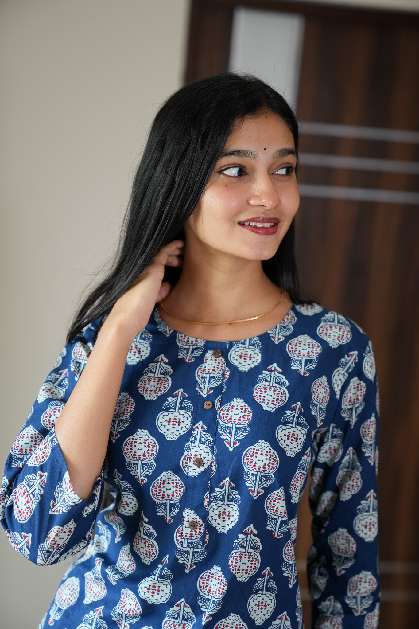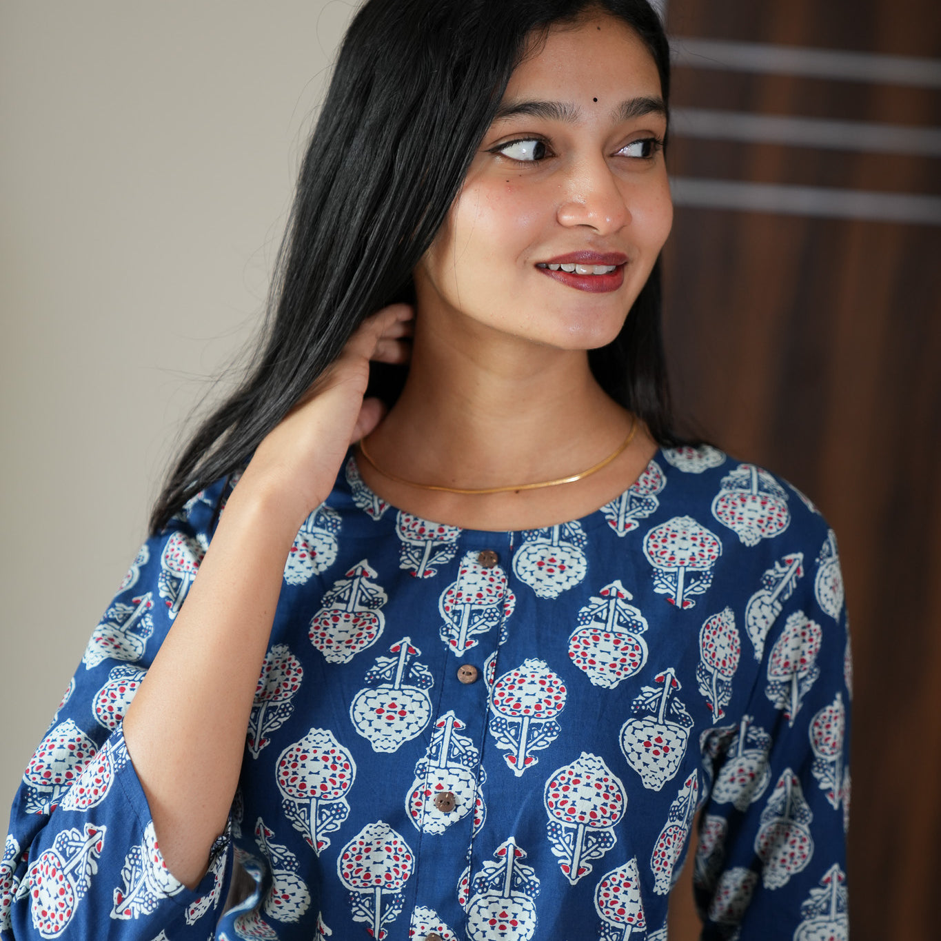 These short kurtis are so cozy, comfortable and chic making it perfect for brunch and a girl's day out! The kurti has a round neck and 3/4 sleeves. It can be paired with a jeans or cotton pants for a relaxed fit.
