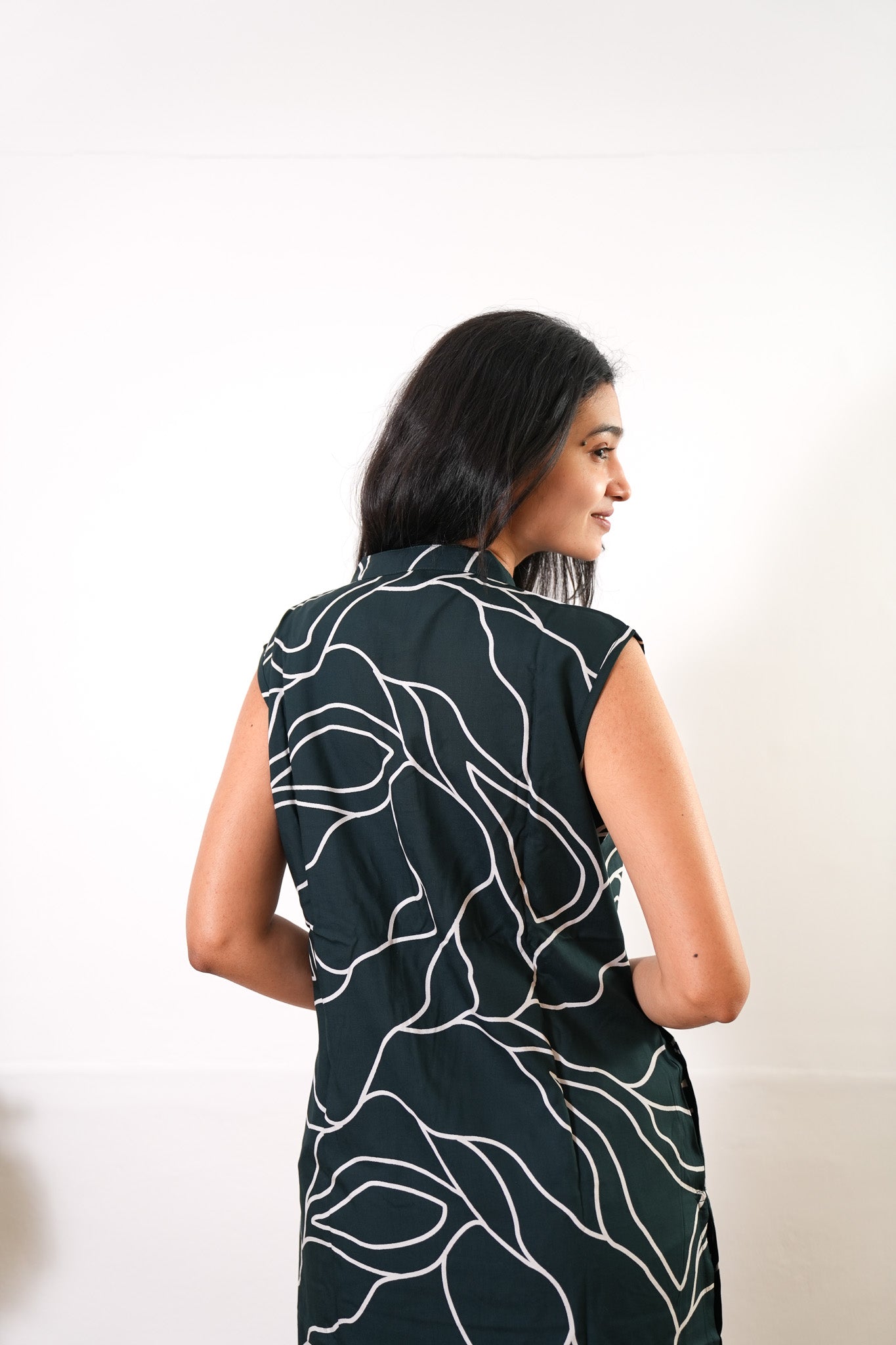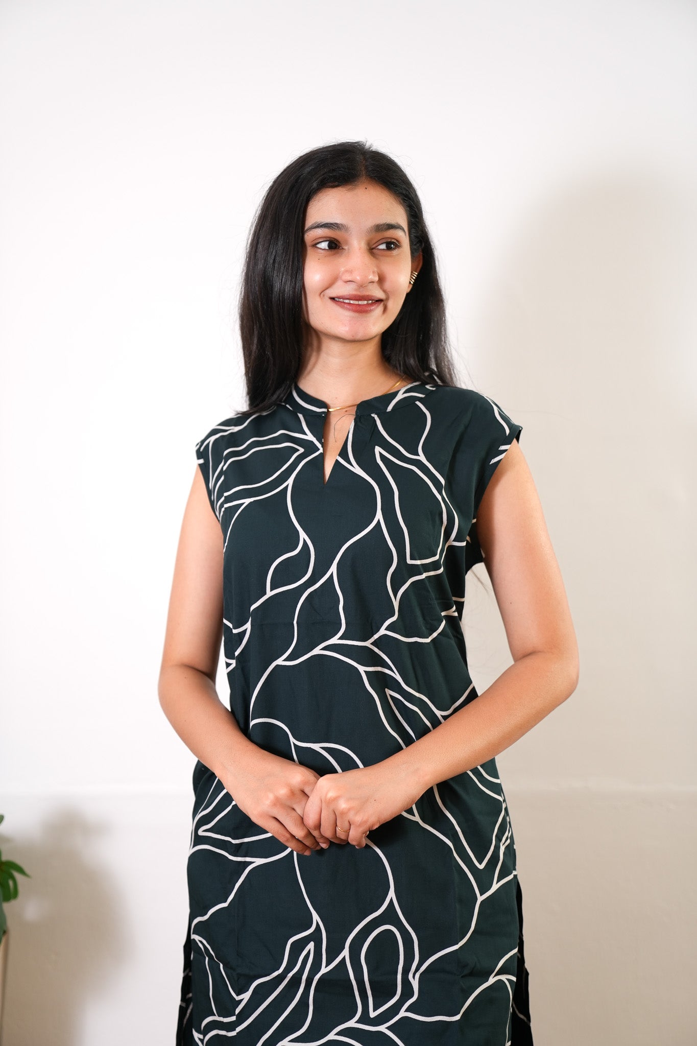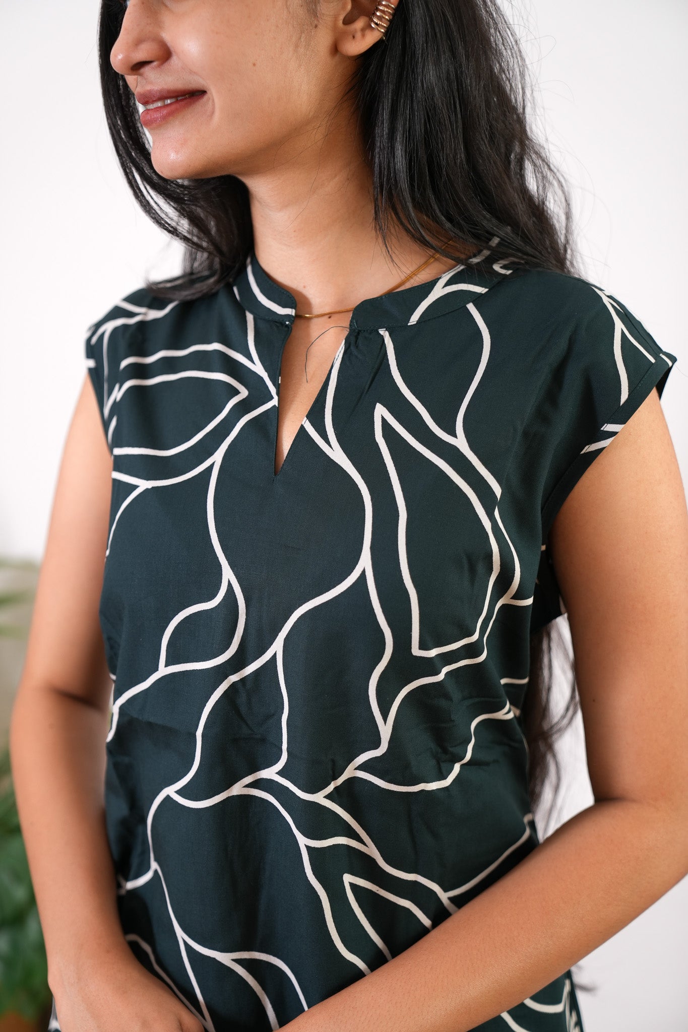 Niraa cotton angrakha kurti- Forest green