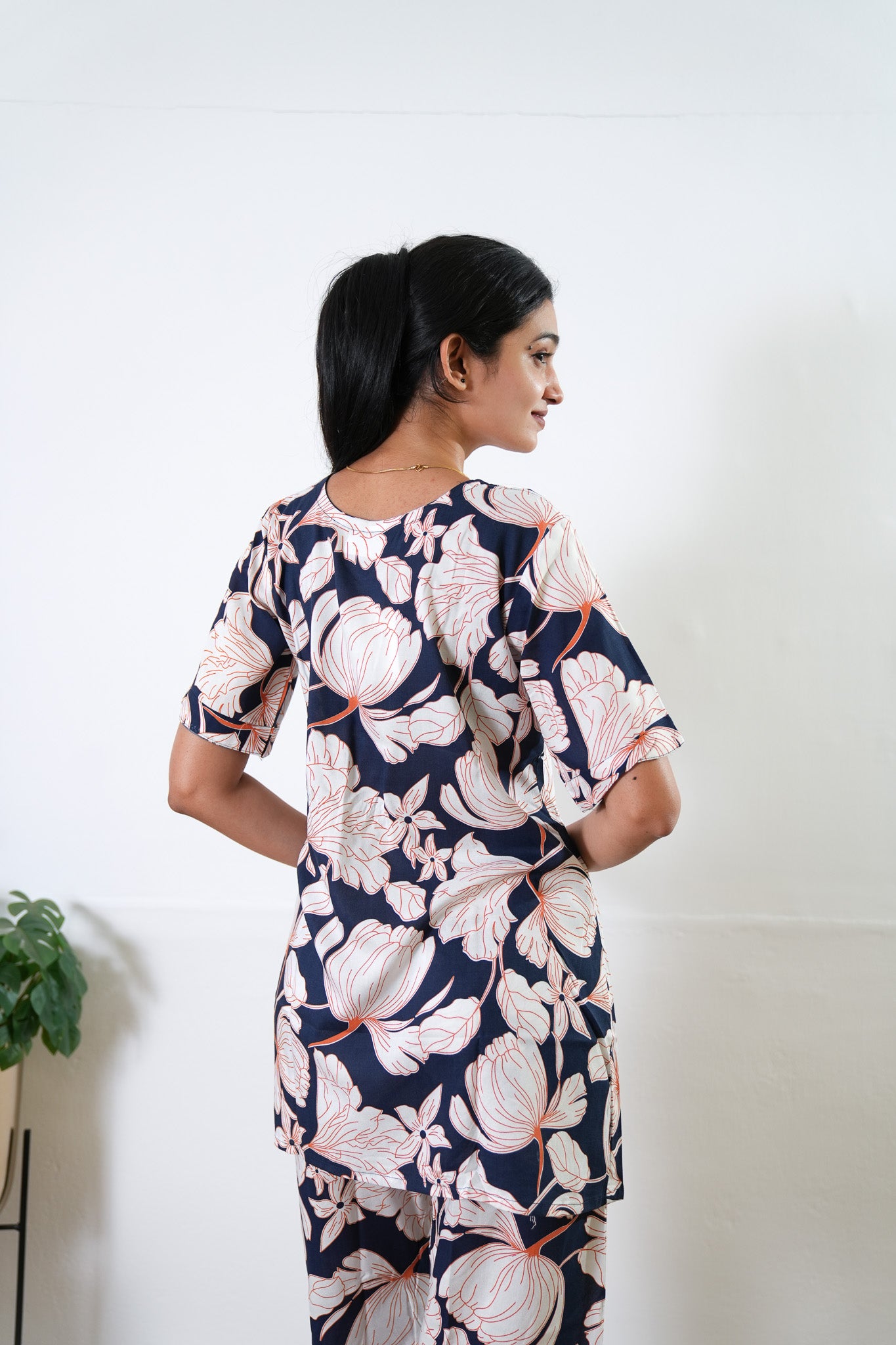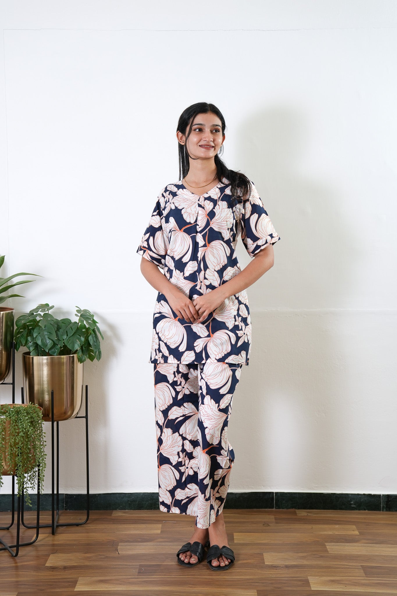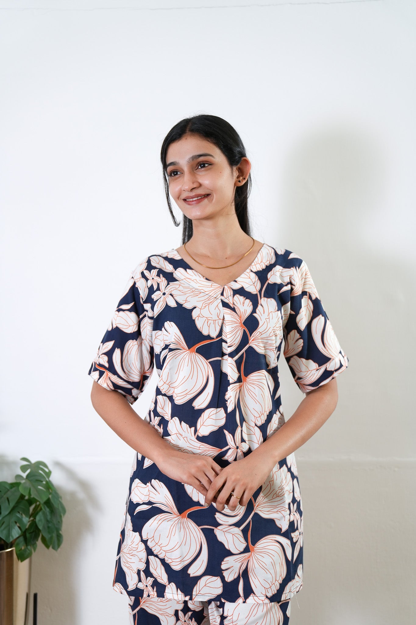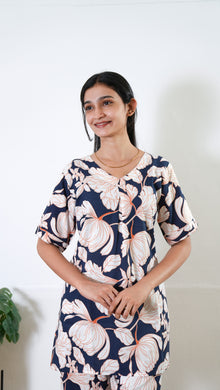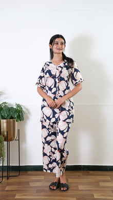 These Co-ords are so cozy, comfortable and chic making it perfect to relax at home or sleep in them. The top has a V neck with short length sleeves. Pant comes with elastic and it has a straight fit. Please order one size larger for a comfortable fit.
