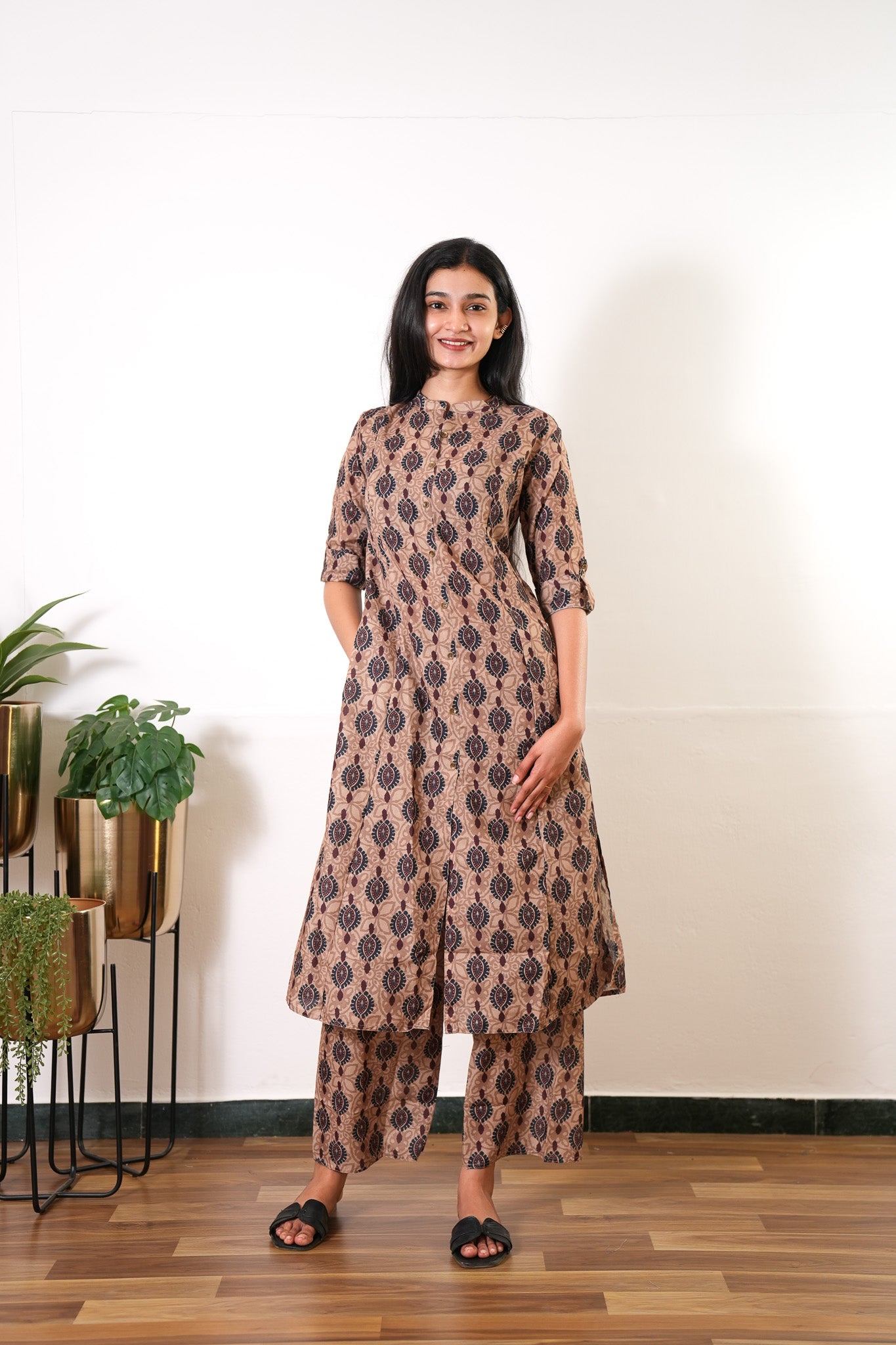 Beige and teal cotton co-ords set