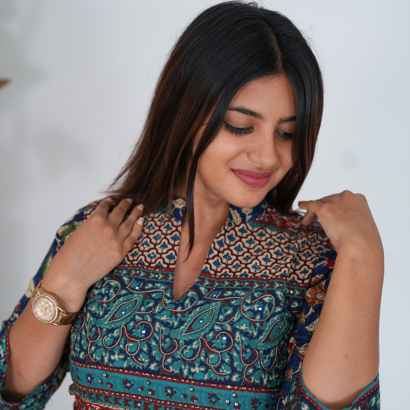 Sea blue floral long gown that exudes elegance and sophistication. It has floral print throughout the gown.