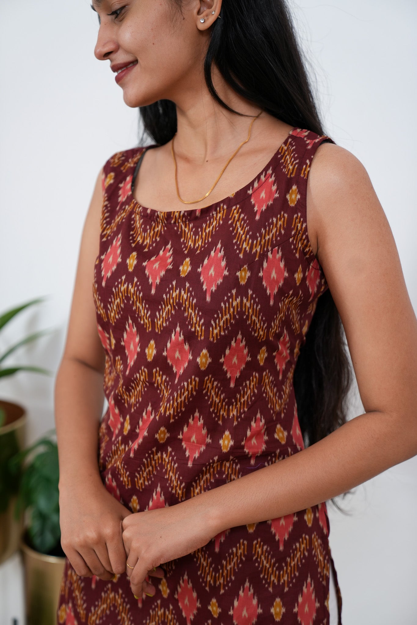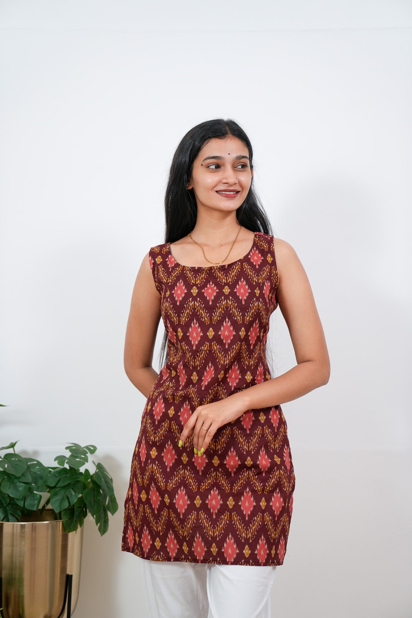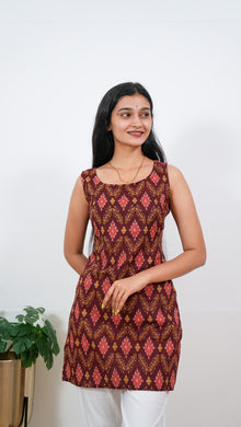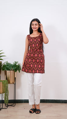 Maroon geometric cotton tunic(attached sleeves)