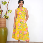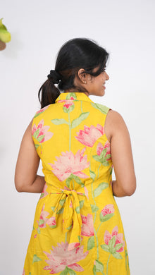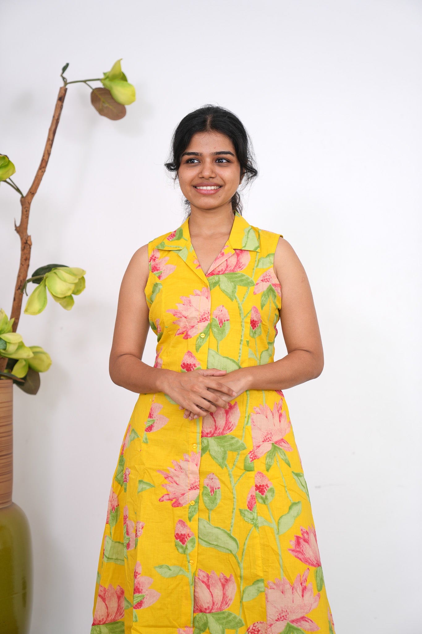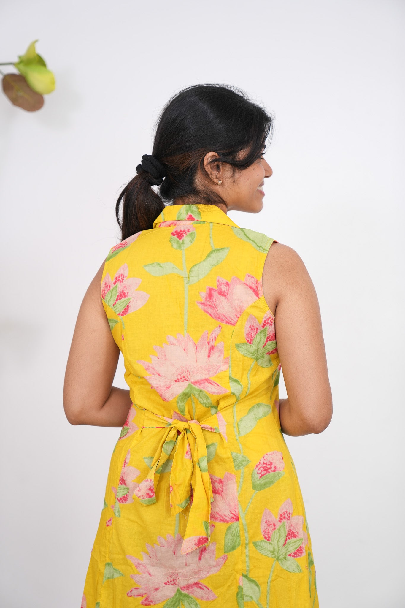 This cotton shirt dress that exudes elegance and sophistication. It has buttons running down which cannot be opened and has a tie at the back.