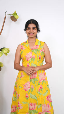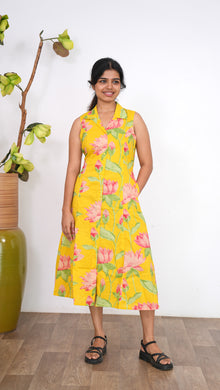 Turquoise lillies cotton shirt dress(attached sleeves)