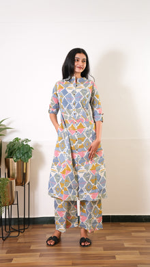 Dark blue geometric cotton co-ords set