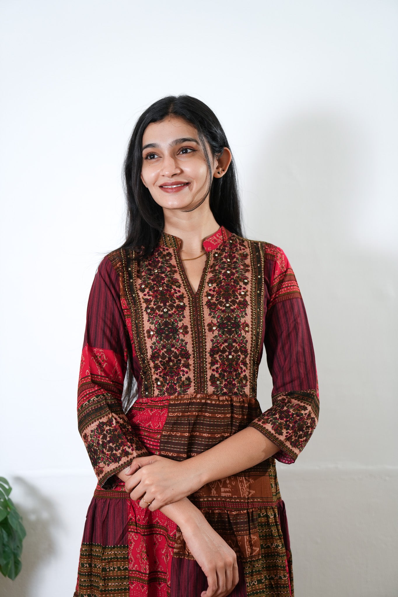 Niraa cotton angrakha kurti-Wine