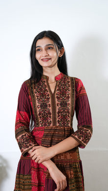 Niraa cotton angrakha kurti- Maroon