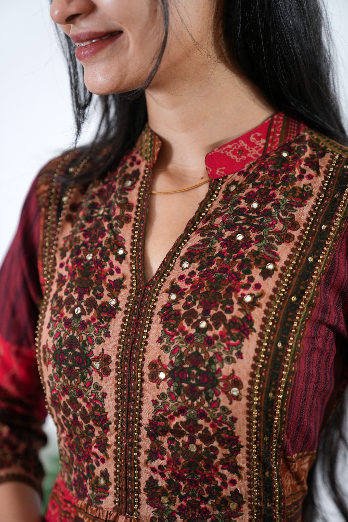 Niraa cotton angrakha kurti- Sindoor